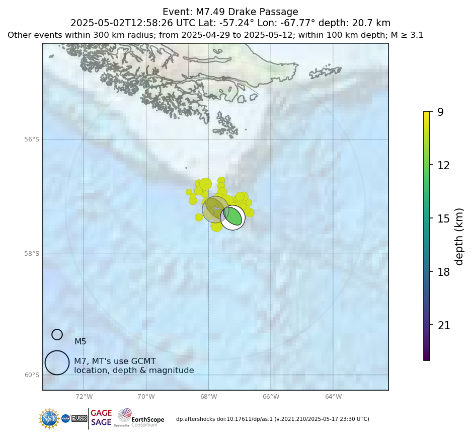 Aftershocks for mww 7.4 DRAKE PASSAGE |