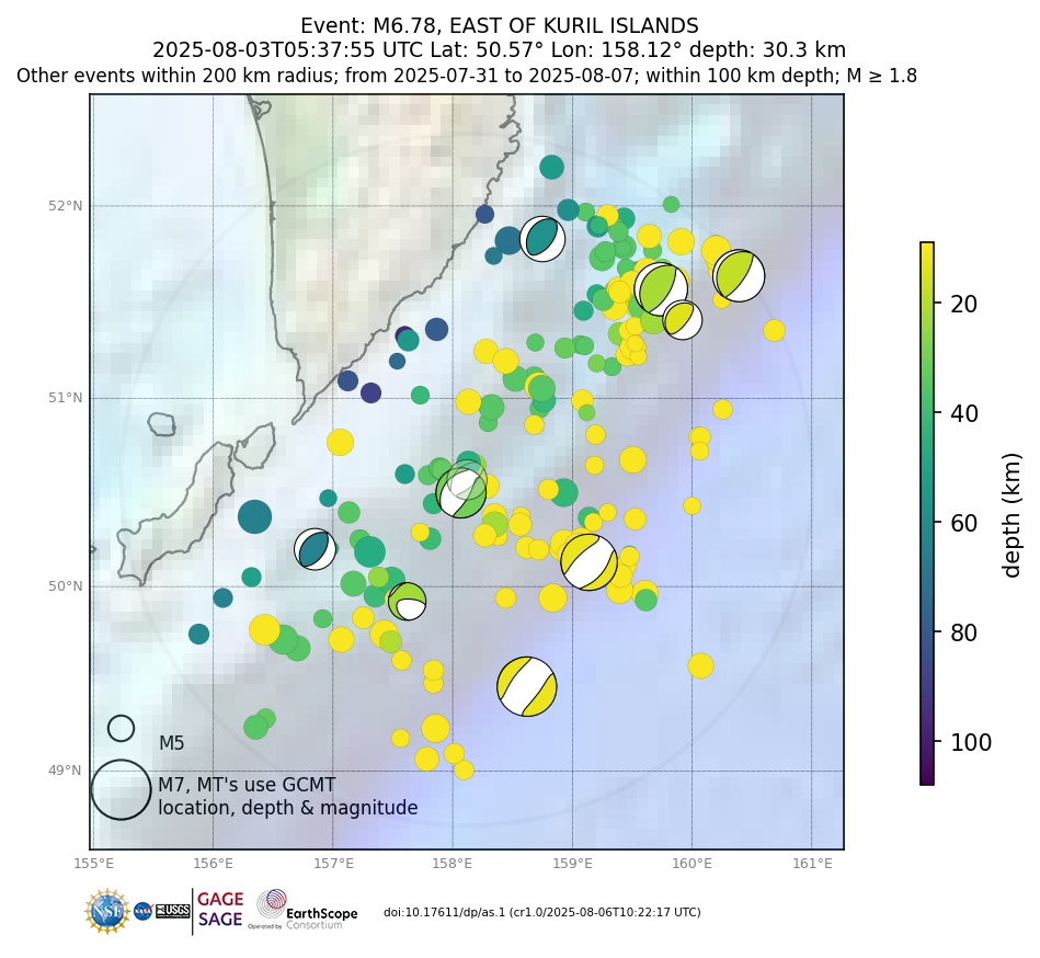 Aftershocks for mww 6.8 KURIL ISLANDS |