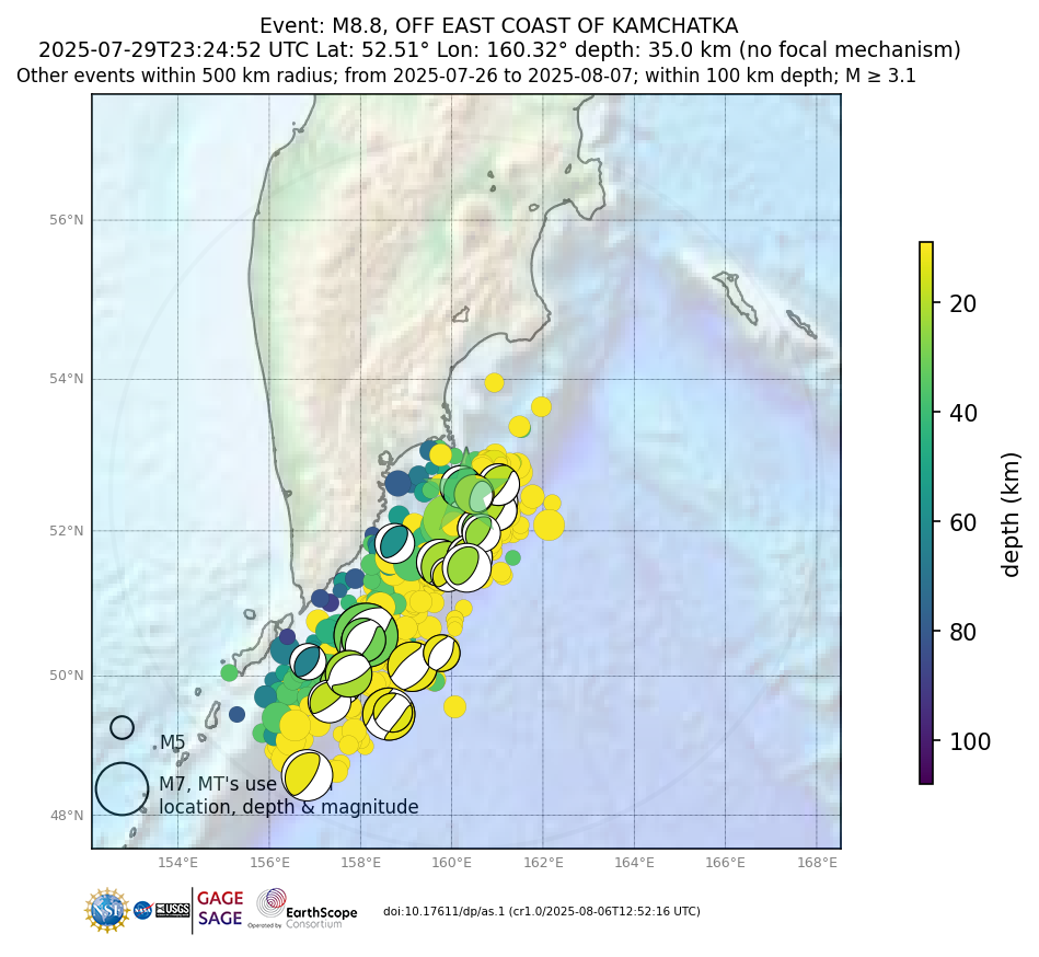 Aftershocks for Mww 8.8 OFF EAST COAST OF KAMCHATKA icon
