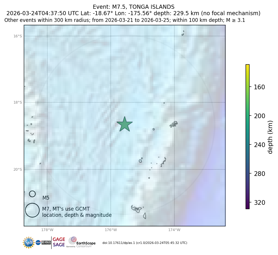 Aftershocks for mww 7.5 TONGA ISLANDS |