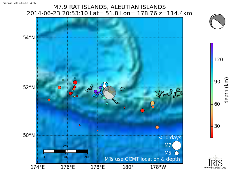 Aftershocks for MI 8.0 RAT ISLANDS, ALEUTIAN ISLANDS |