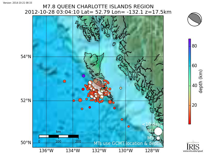 Aftershocks for MW 7.7 QUEEN CHARLOTTE ISLANDS REGION |