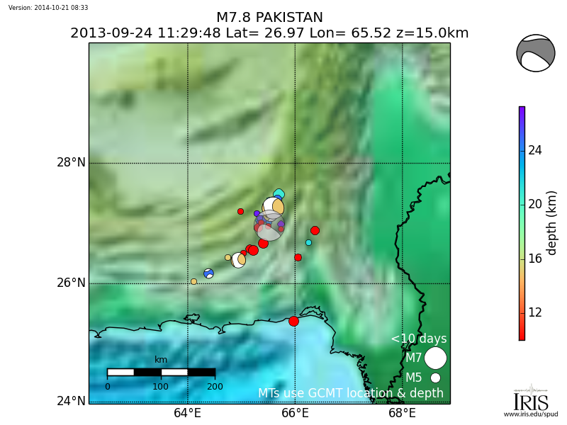 Aftershocks for M 7.8 PAKISTAN |