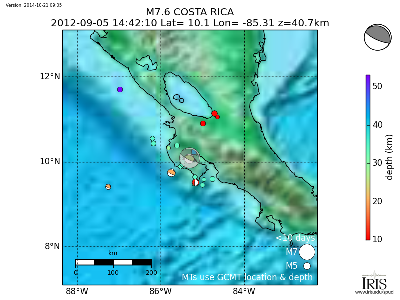 Aftershocks for MI 7.6 COSTA RICA |