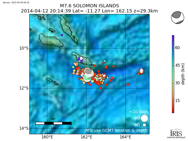 Aftershocks for MI 7.6 SOLOMON ISLANDS |