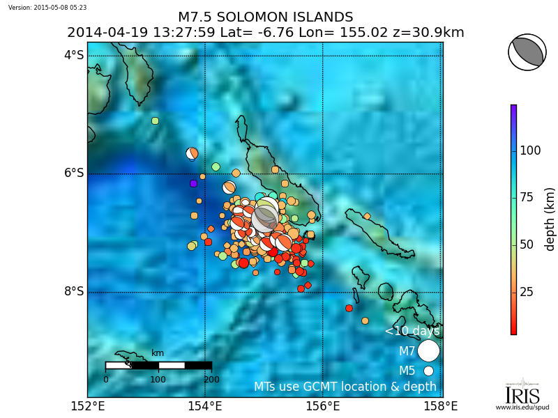 Aftershocks for MI 7.5 SOLOMON ISLANDS |