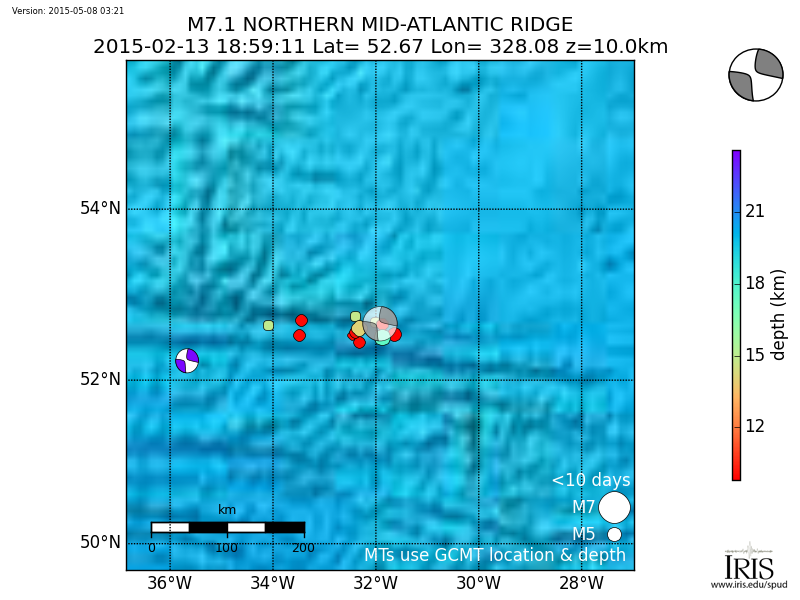 Aftershocks for MO 6.9 NORTHERN MID-ATLANTIC RIDGE |