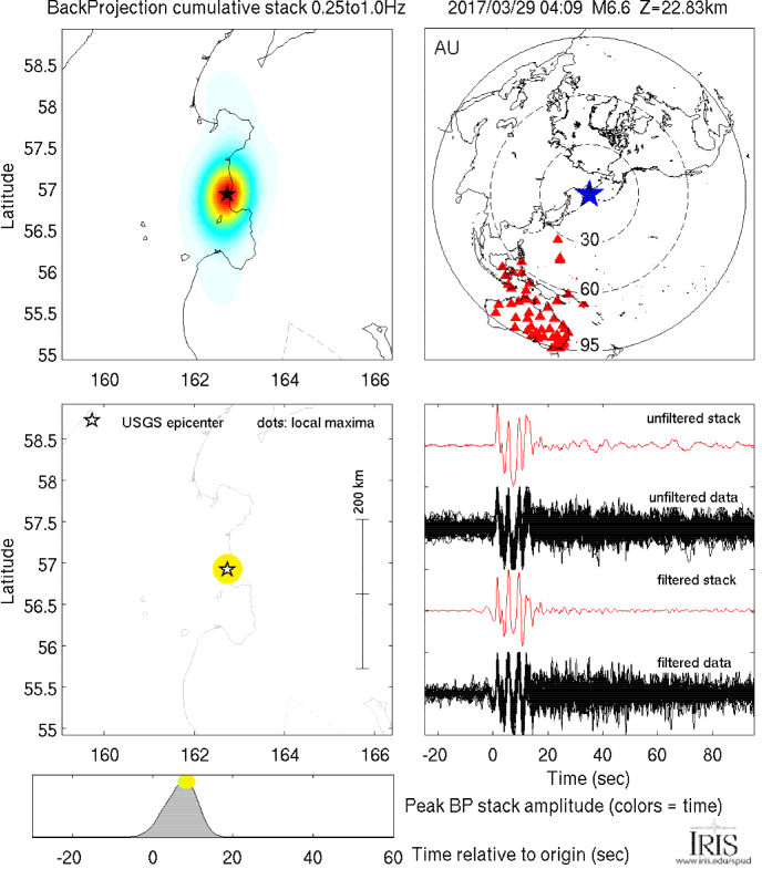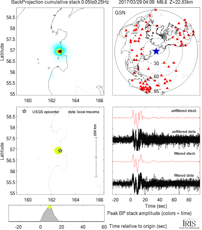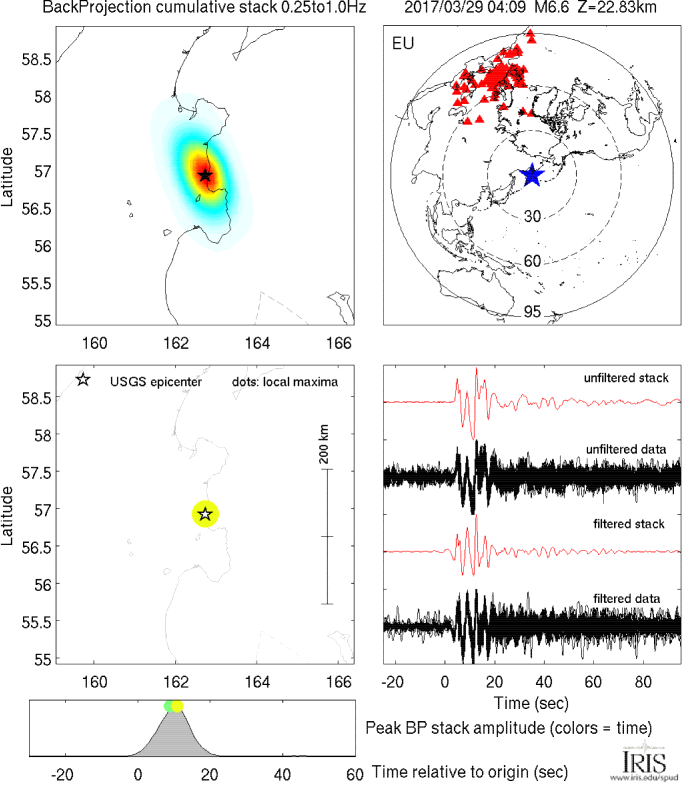 Back Projections for Mww 6.6 NEAR EAST COAST OF KAMCHATKA |