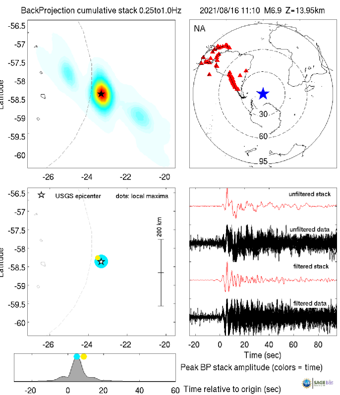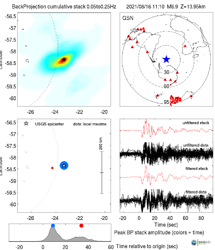 Back Projections for Mww 6.9 SOUTH SANDWICH ISLANDS REGION |