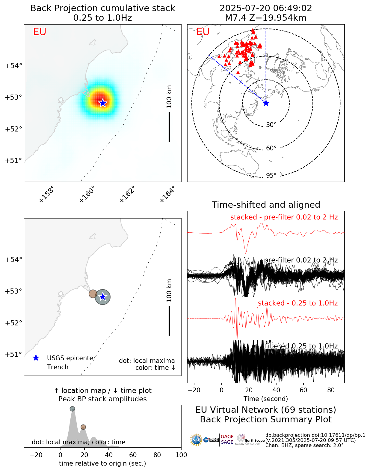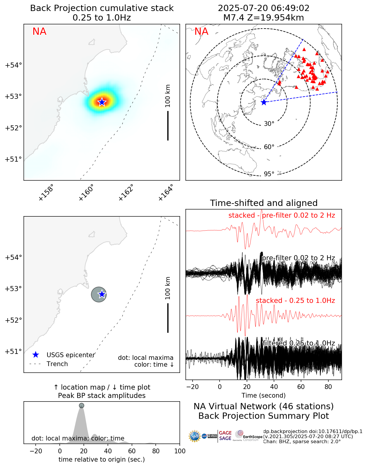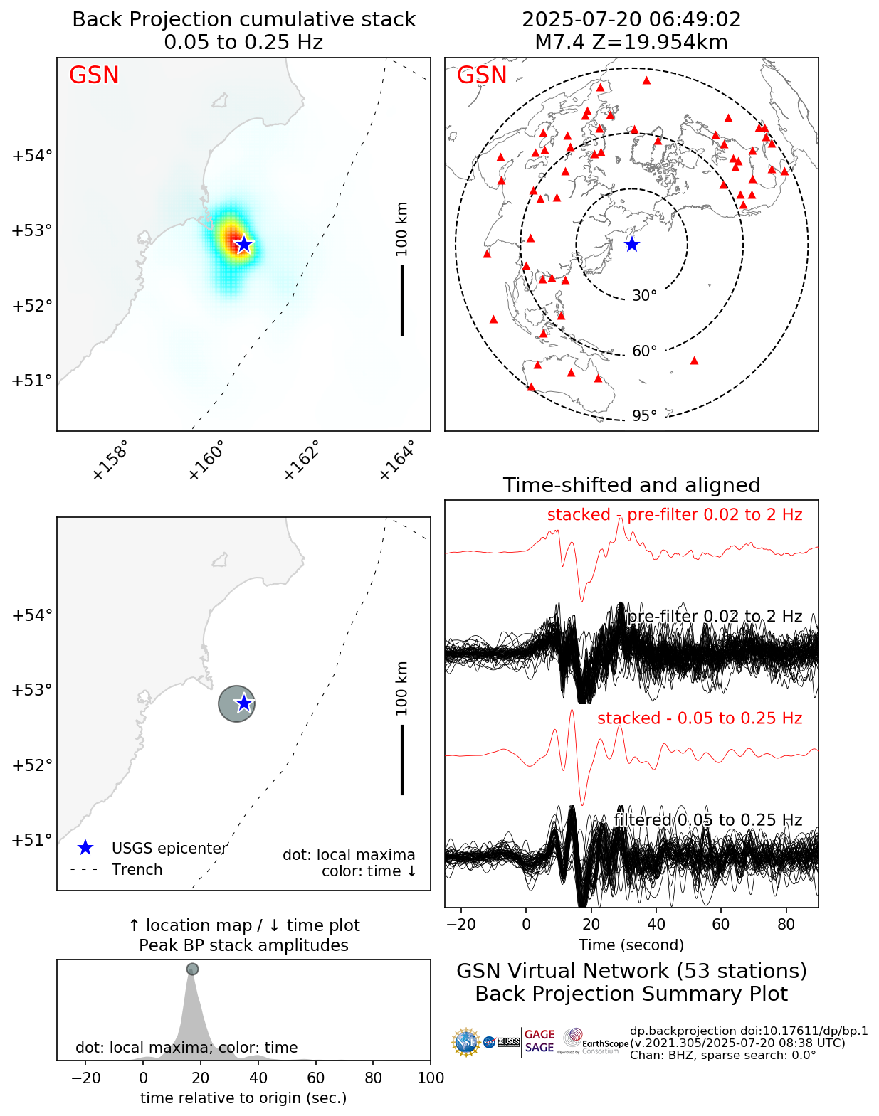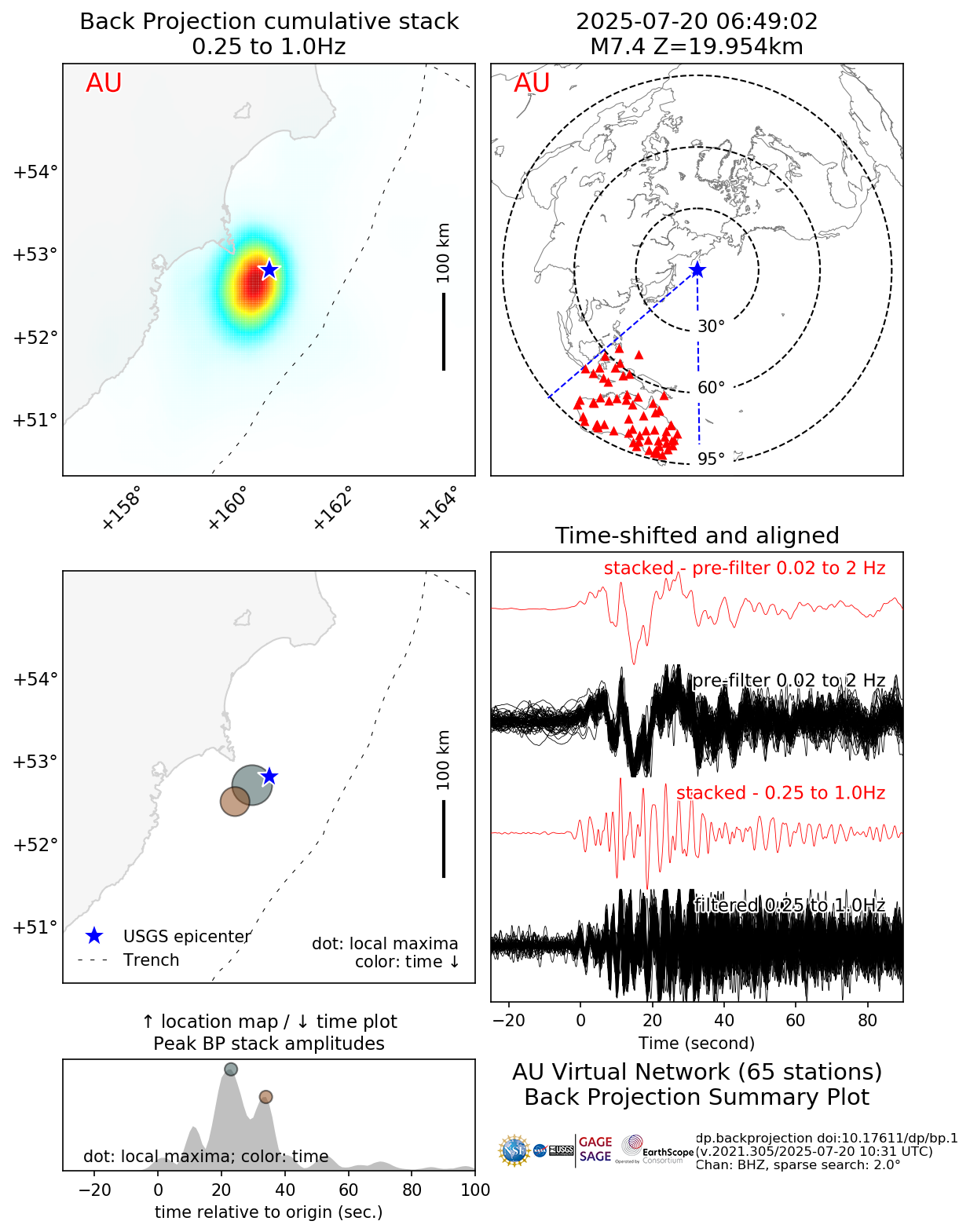Back Projections for Mww 7.4 OFF EAST COAST OF KAMCHATKA |