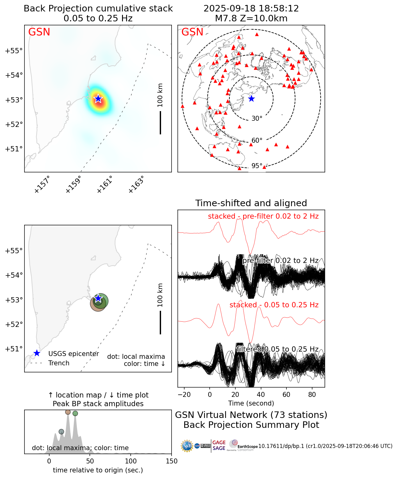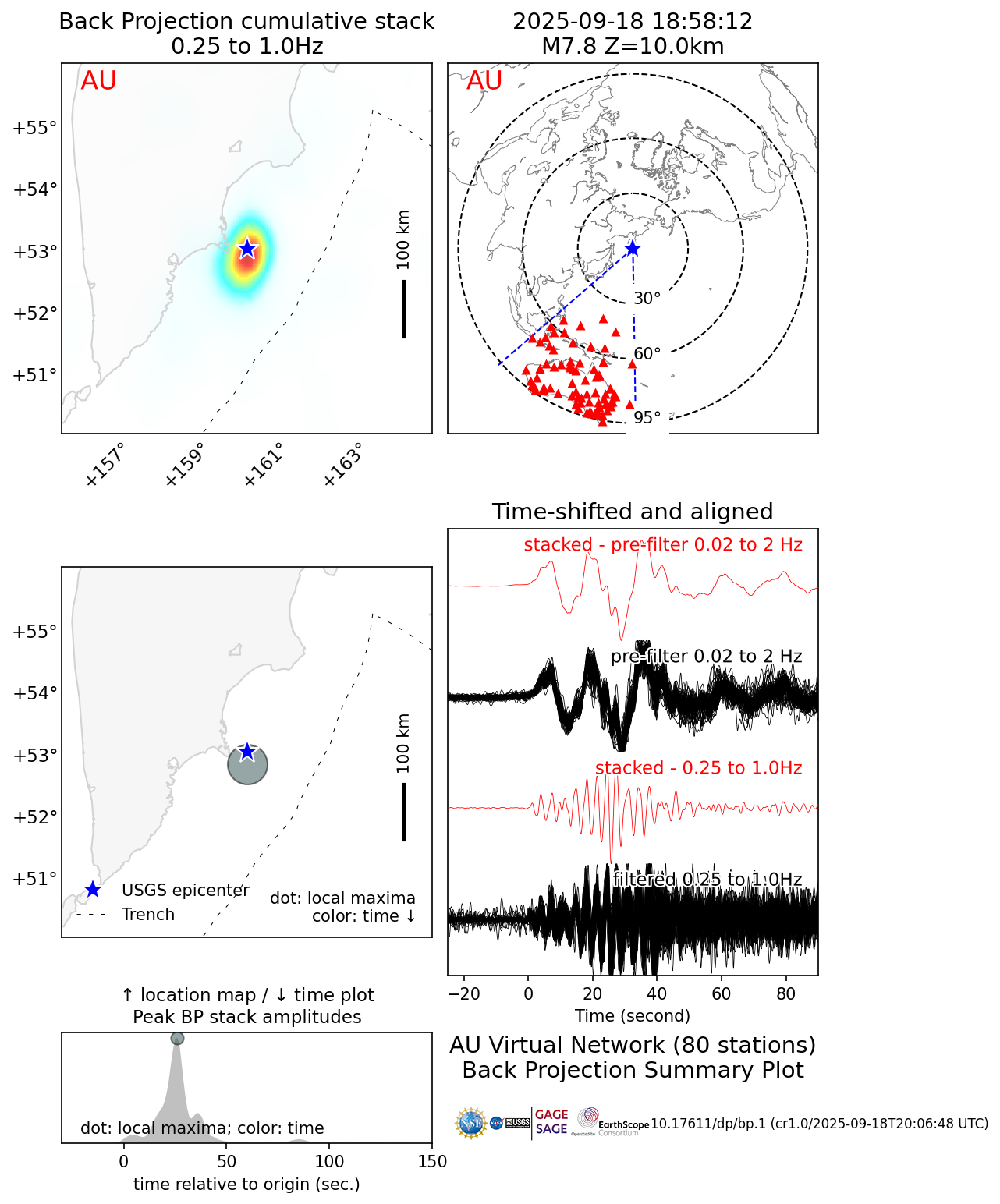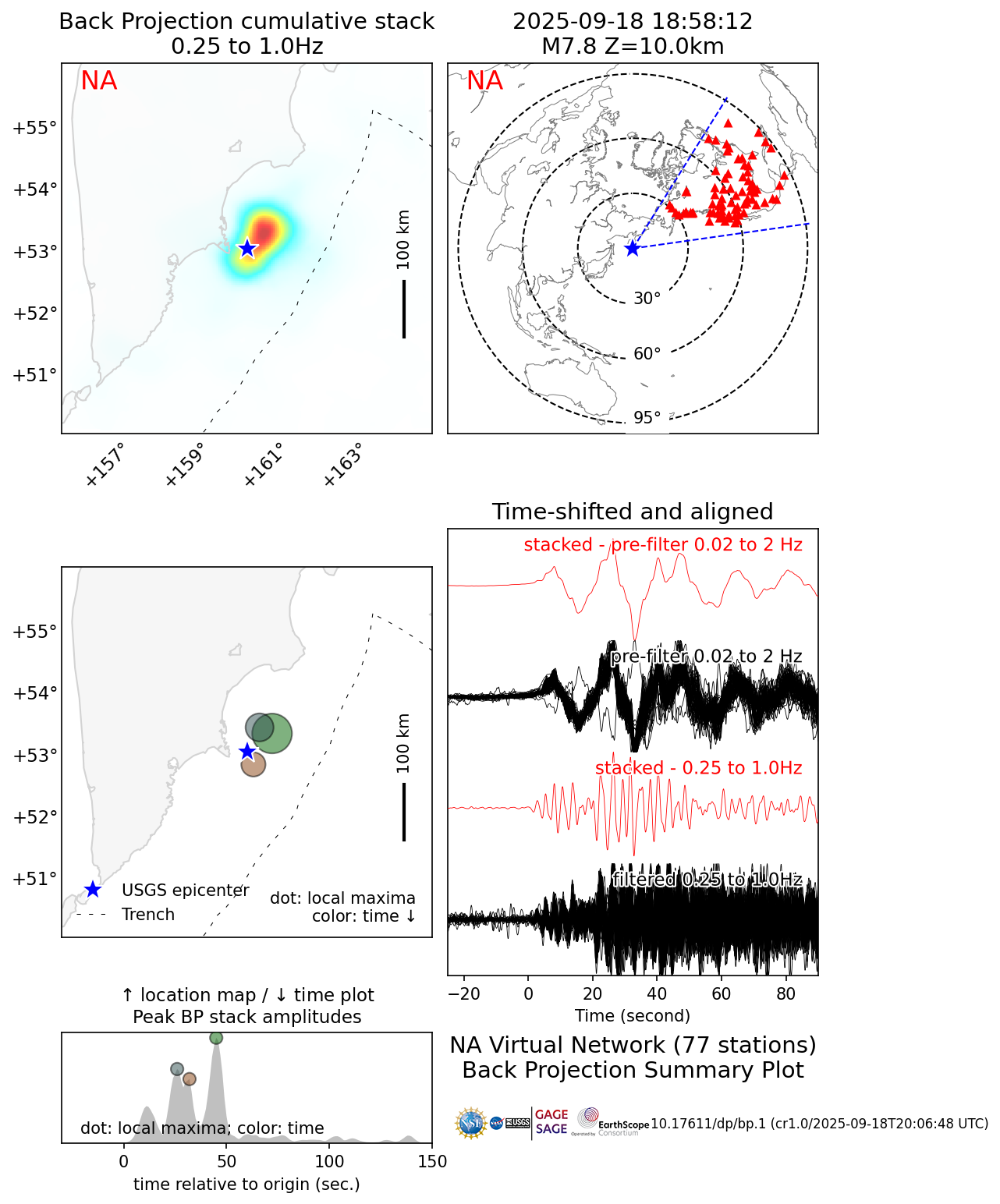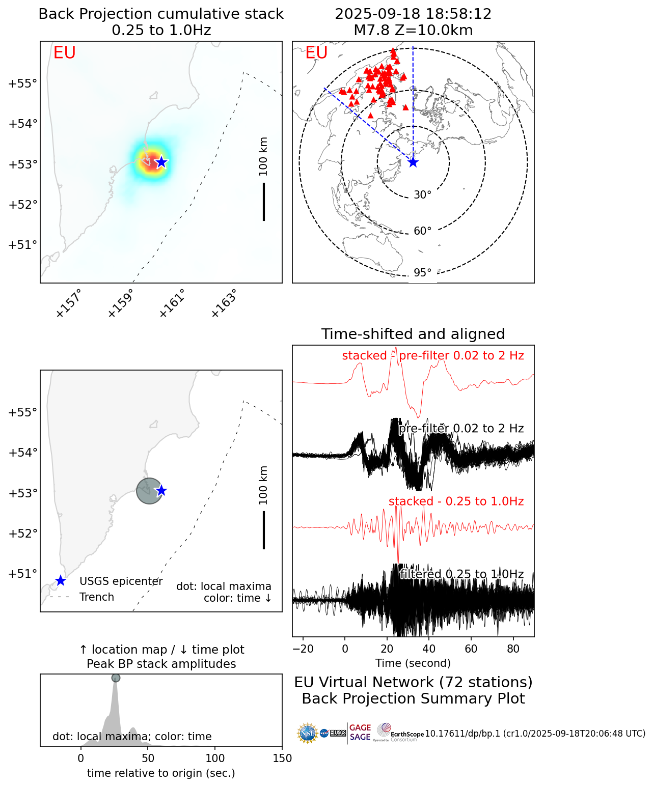 Back Projections for mww 7.8 NEAR EAST COAST OF KAMCHATKA |