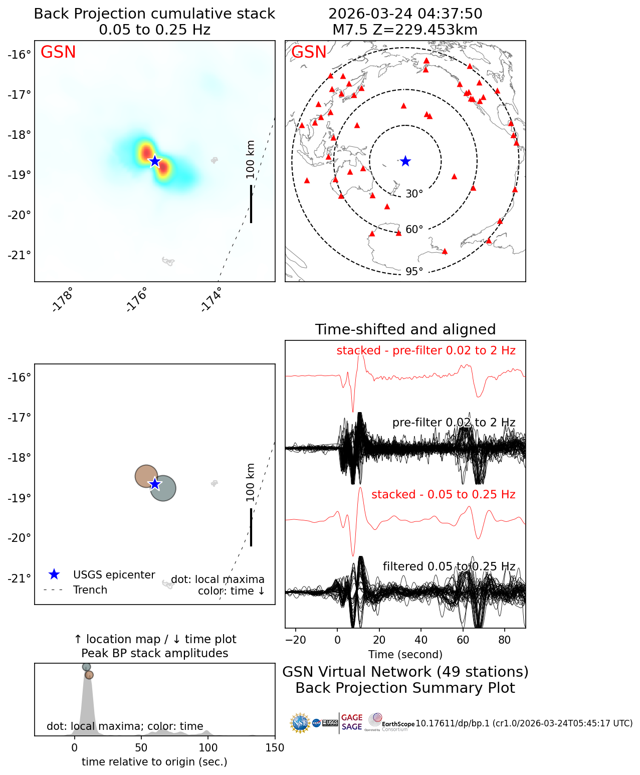 Back Projections for mww 7.5 TONGA ISLANDS |