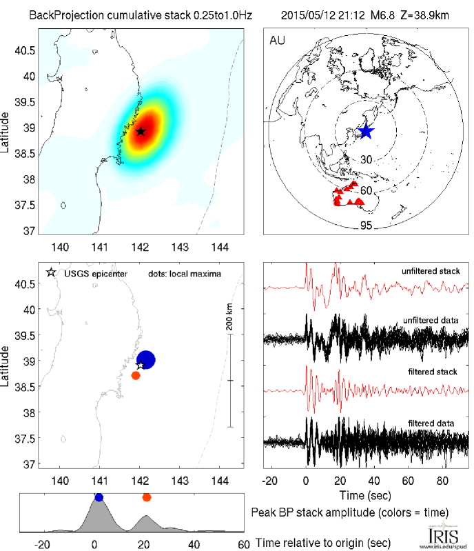 Back Projections for MO 6.8 NEAR EAST COAST OF HONSHU, JAPAN |