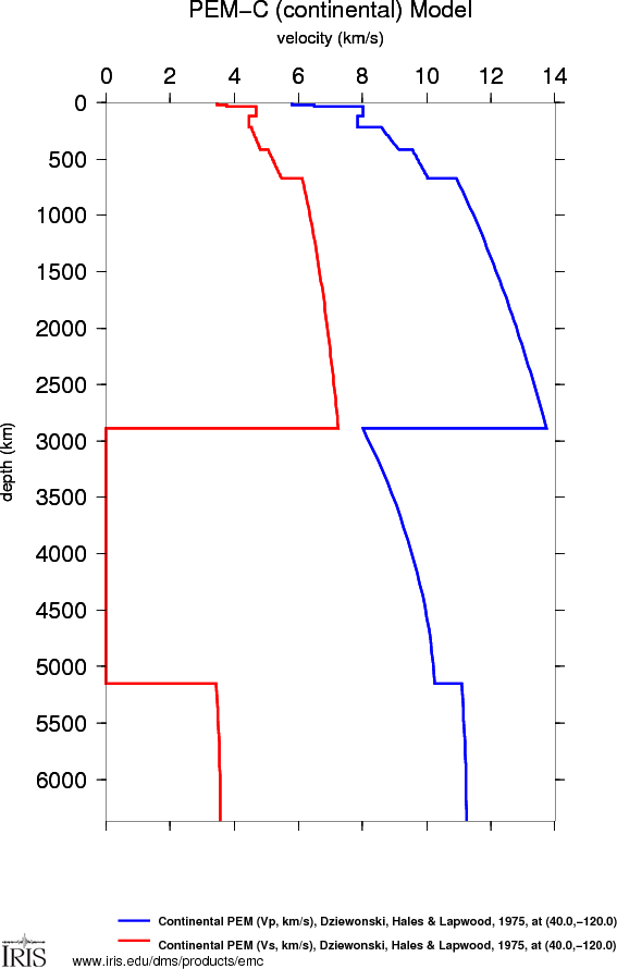 If you use Earth Models in publications, please cite according to the instructions at:Dziewonski, A. M., A. L. Hales, and E. R. Lapwood. 1975. "Parametrically simple earth models consistent with geophysical data Phys." Earth Plan. Int. 10:12. |