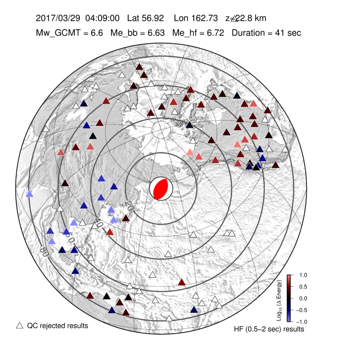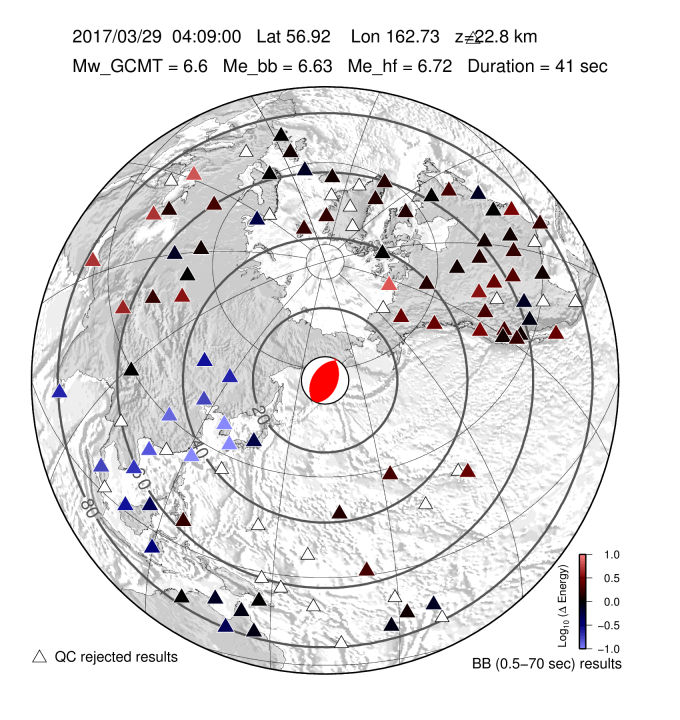 EQ Energy for Mww 6.6 NEAR EAST COAST OF KAMCHATKA |