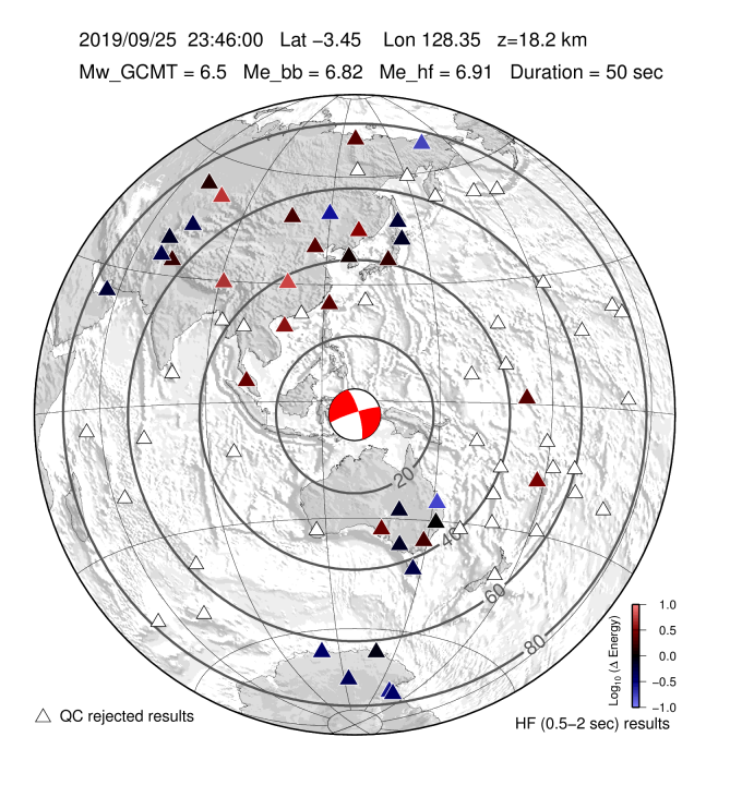 EQ Energy for Mww 6.5 SERAM, INDONESIA |