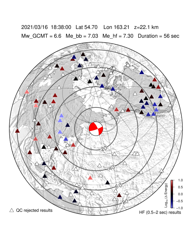 EQ Energy for mww 6.6 OFF EAST COAST OF KAMCHATKA |