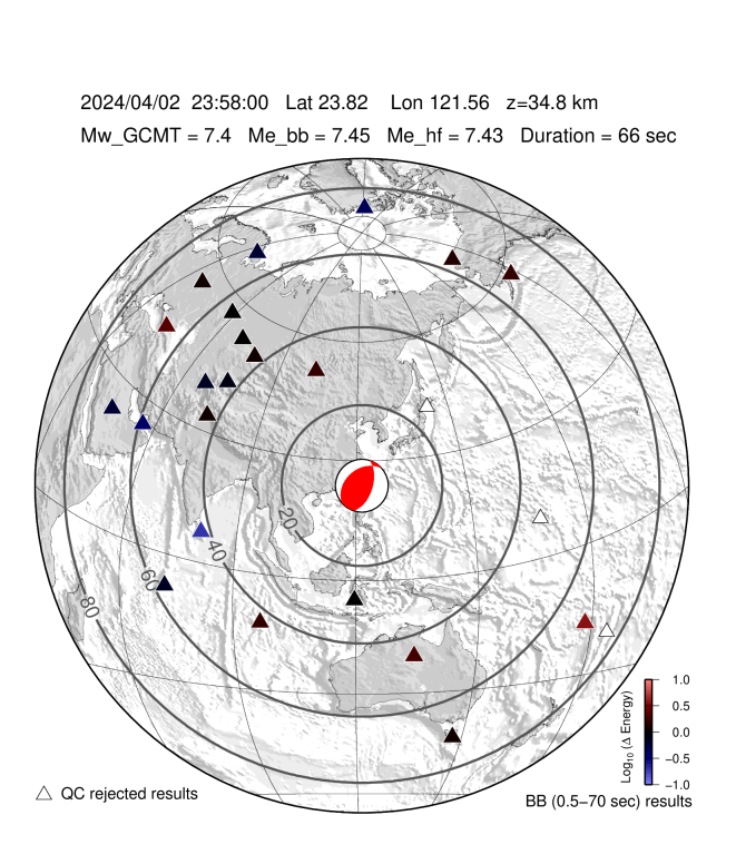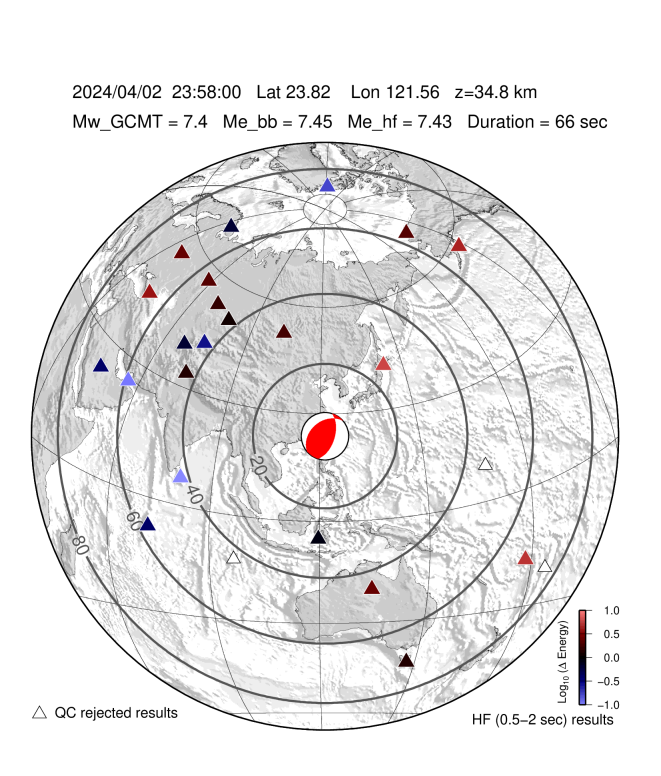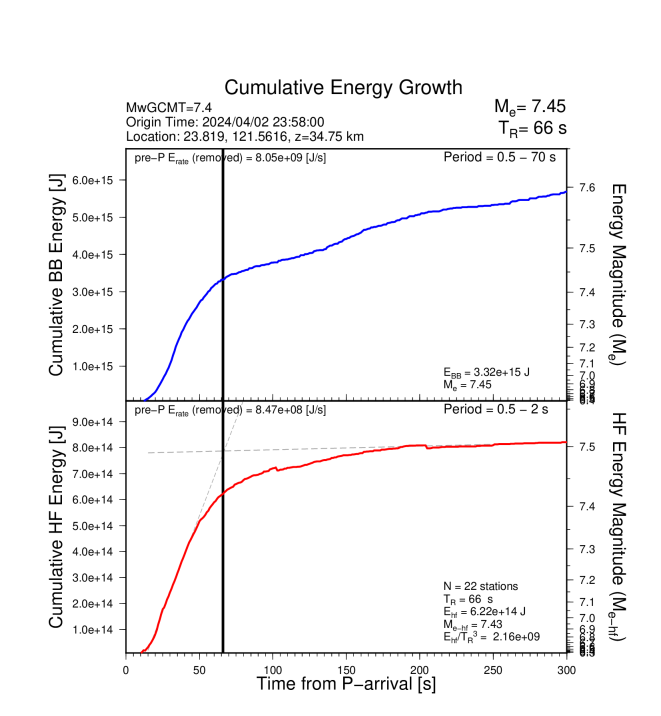 Earthquake energy and rupture duration are estimated by integrating P-wave energy from a global distribution of stations from 25-80 degrees distance following all Mw 6.0+ earthquakes with a GCMT moment tensor. The method follows Convers & Newman, 2011. For more information regarding EQ Energy products visit the IRIS EQ Energy Product Page. |