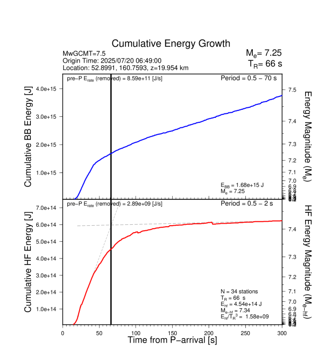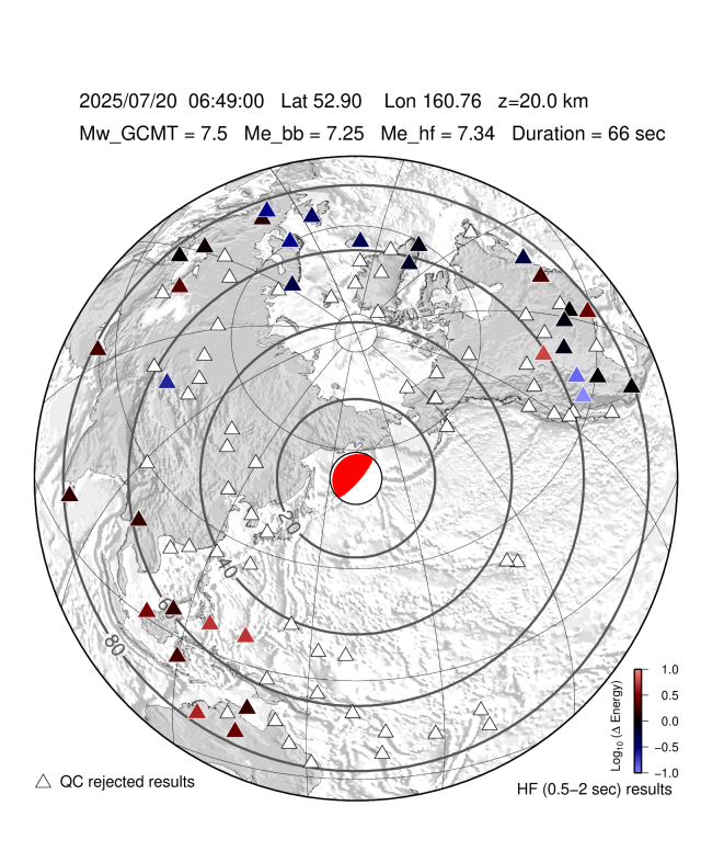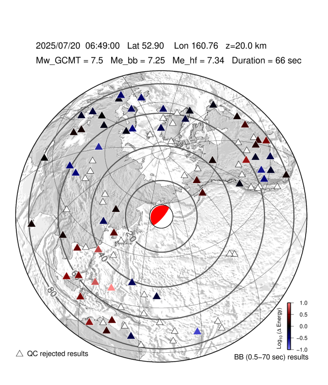 EQ Energy for Mww 7.4 OFF EAST COAST OF KAMCHATKA |