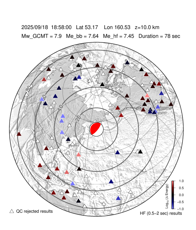 EQ Energy for mww 7.8 NEAR EAST COAST OF KAMCHATKA |