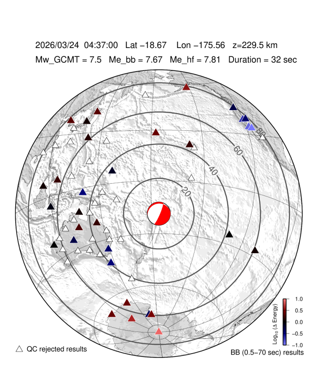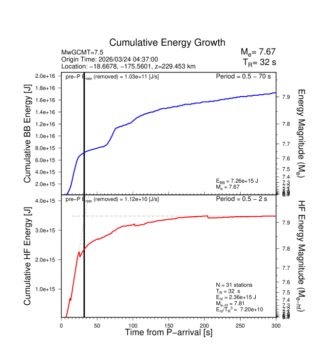 EQ Energy for mww 7.5 TONGA ISLANDS |