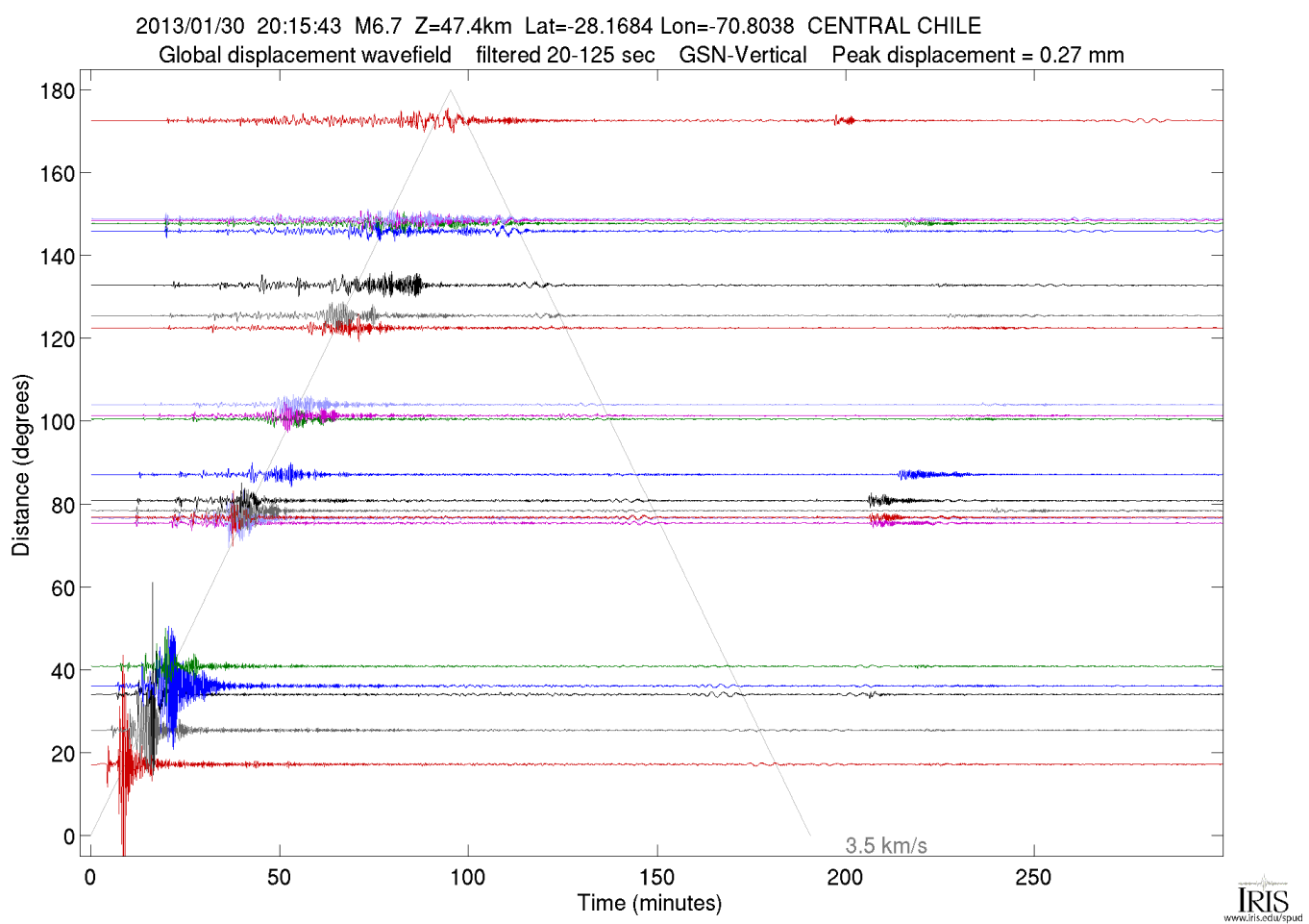 The Event Plots product is a suite of plots that are automatically generated following all global M6.0+ earthquakes (M5.0+ for continental US). The plots use all open broadband data available at the IRIS DMC at the time the product was generated. For more information on Event Plots visit the Event Plot product page. |