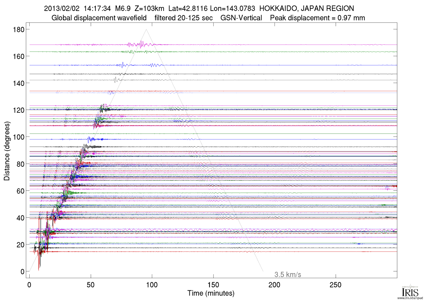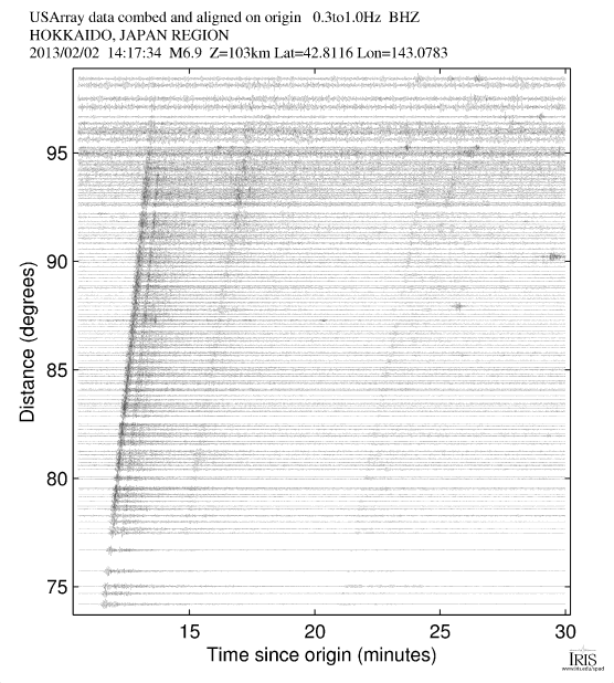 The Event Plots product is a suite of plots that are automatically generated following all global M6.0+ earthquakes (M5.0+ for continental US). The plots use all open broadband data available at the IRIS DMC at the time the product was generated. For more information on Event Plots visit the Event Plot product page. |
