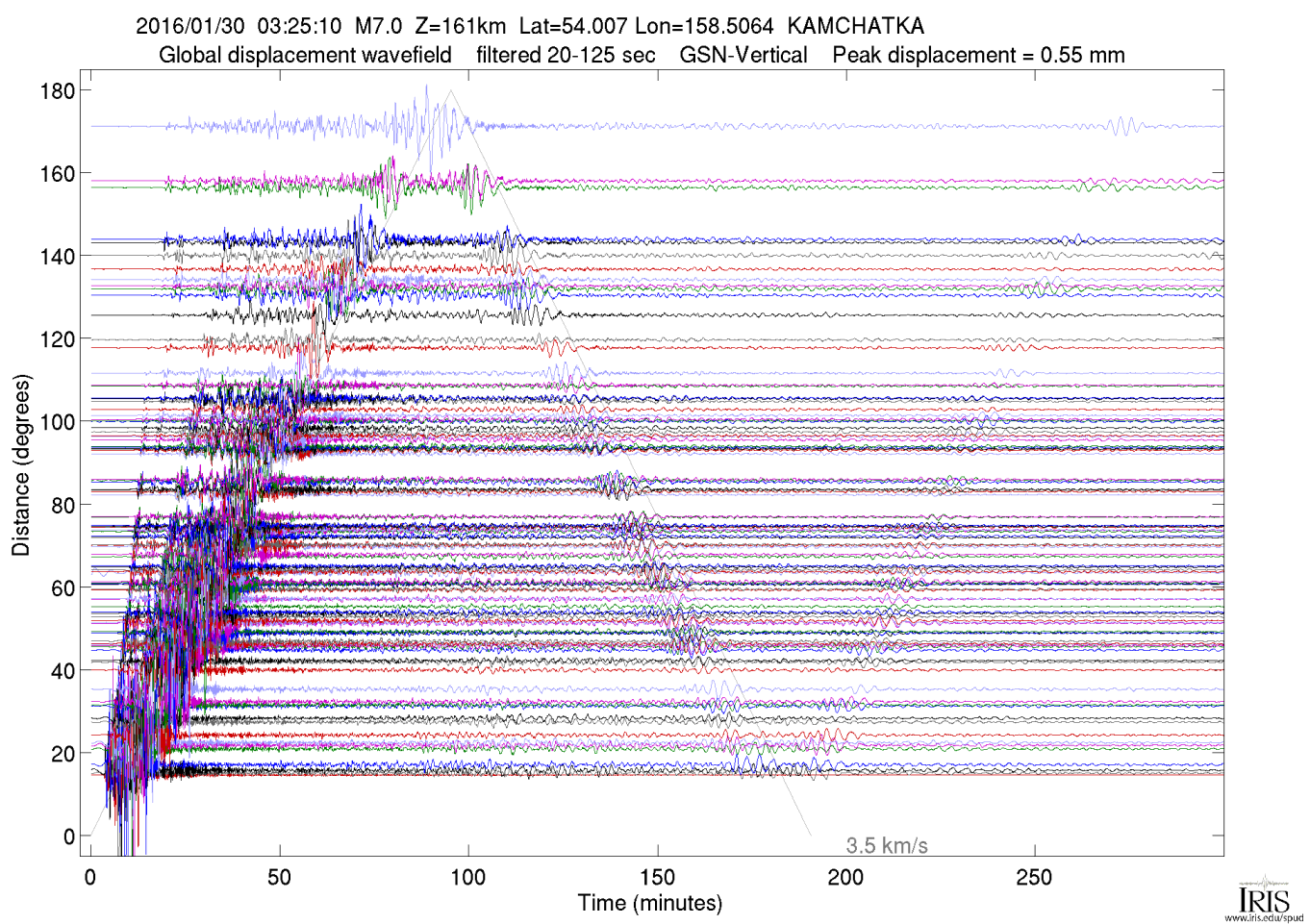 The Event Plots product is a suite of plots that are automatically generated following all global M6.0+ earthquakes (M5.0+ for continental US). The plots use all open broadband data available at the IRIS DMC at the time the product was generated. For more information on Event Plots visit the Event Plot product page. |