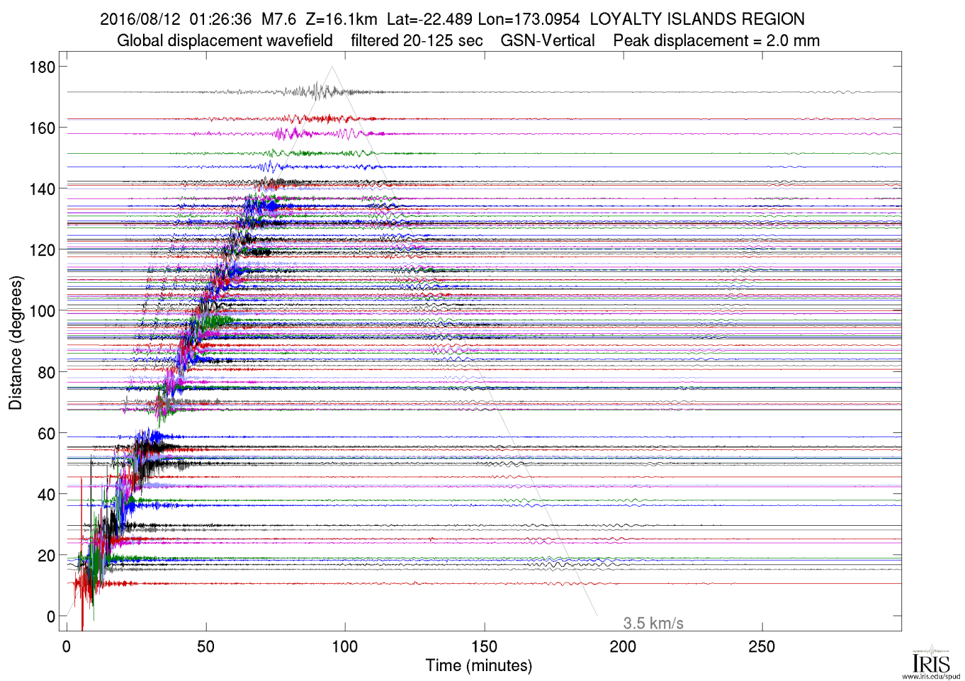 The Event Plots product is a suite of plots that are automatically generated following all global M6.0+ earthquakes (M5.0+ for continental US). The plots use all open broadband data available at the IRIS DMC at the time the product was generated. For more information on Event Plots visit the Event Plot product page. |