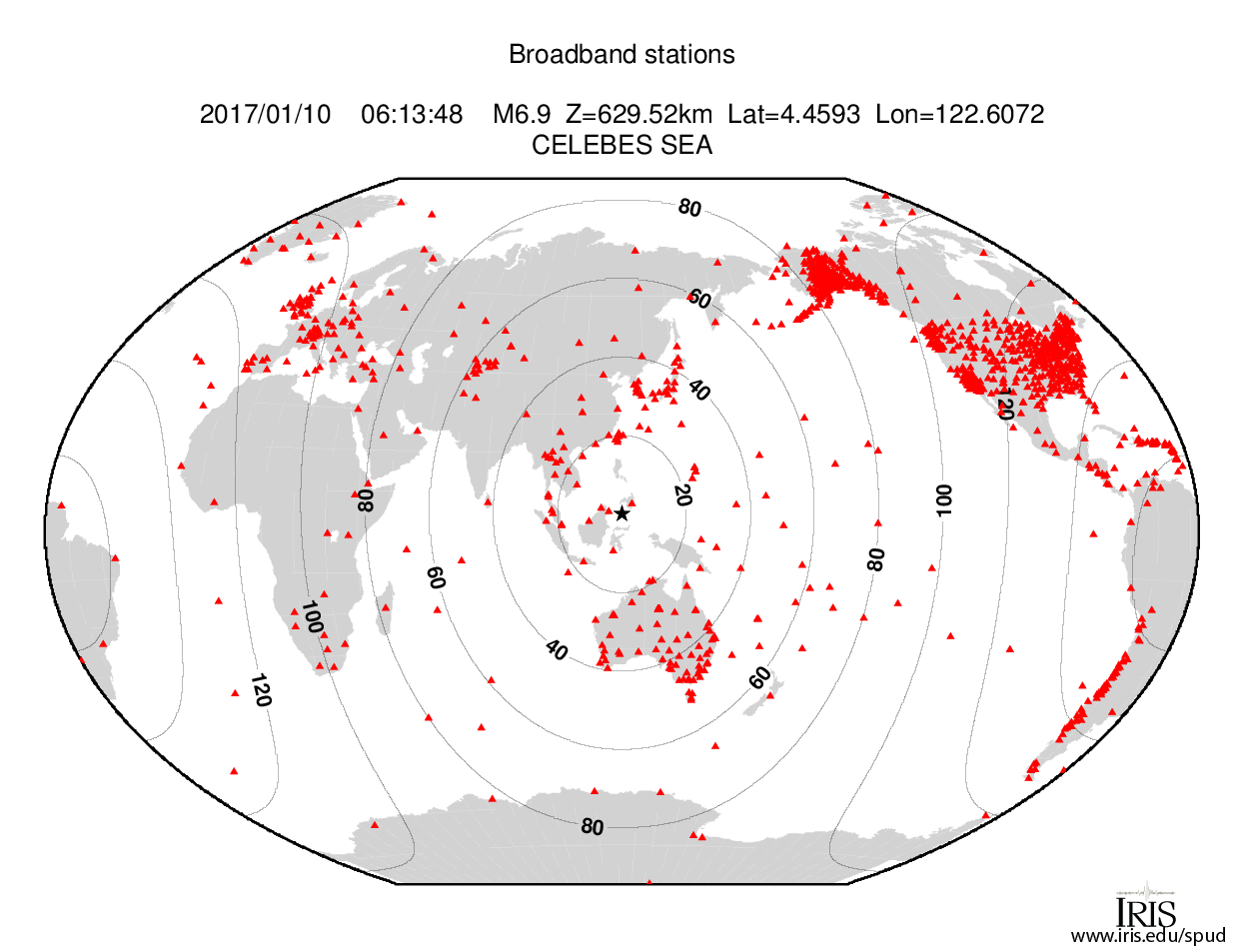 Event Plots for Mwp 6.9 CELEBES SEA |