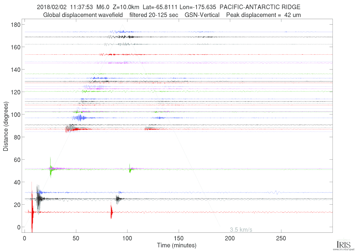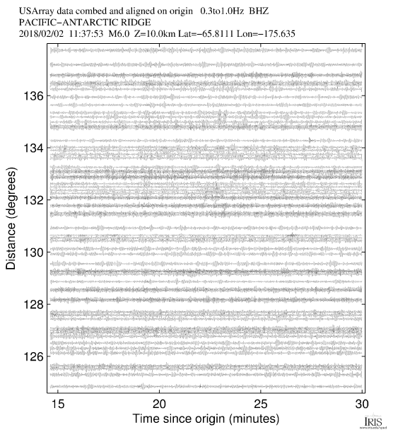 The Event Plots product is a suite of plots that are automatically generated following all global M6.0+ earthquakes (M5.0+ for continental US). The plots use all open broadband data available at the IRIS DMC at the time the product was generated. For more information on Event Plots visit the Event Plot product page. |