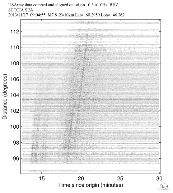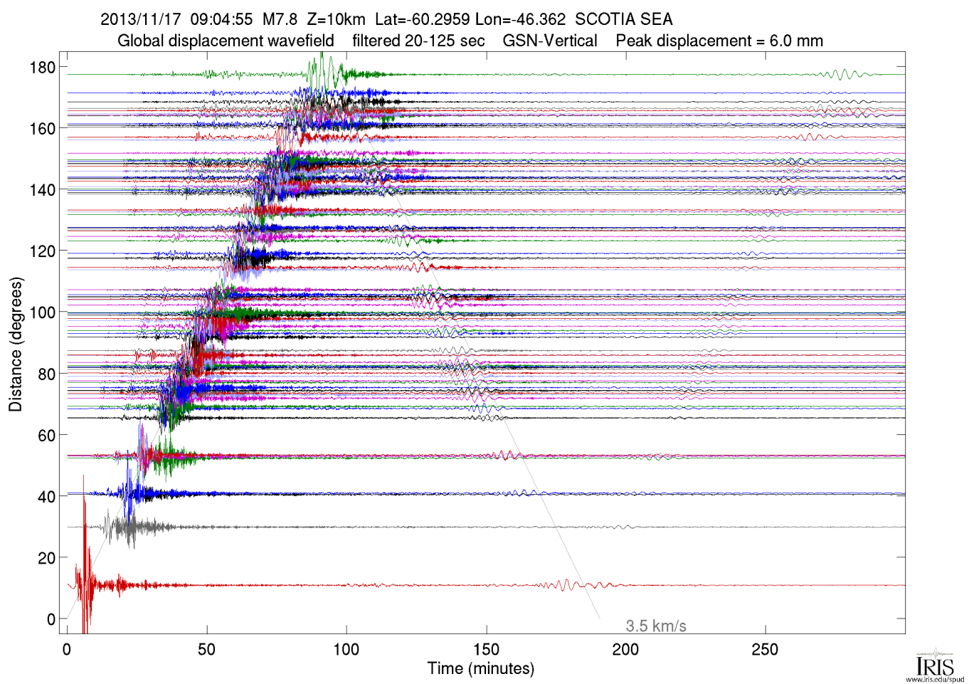 The Event Plots product is a suite of plots that are automatically generated following all global M6.0+ earthquakes (M5.0+ for continental US). The plots use all open broadband data available at the IRIS DMC at the time the product was generated. For more information on Event Plots visit the Event Plot product page. |
