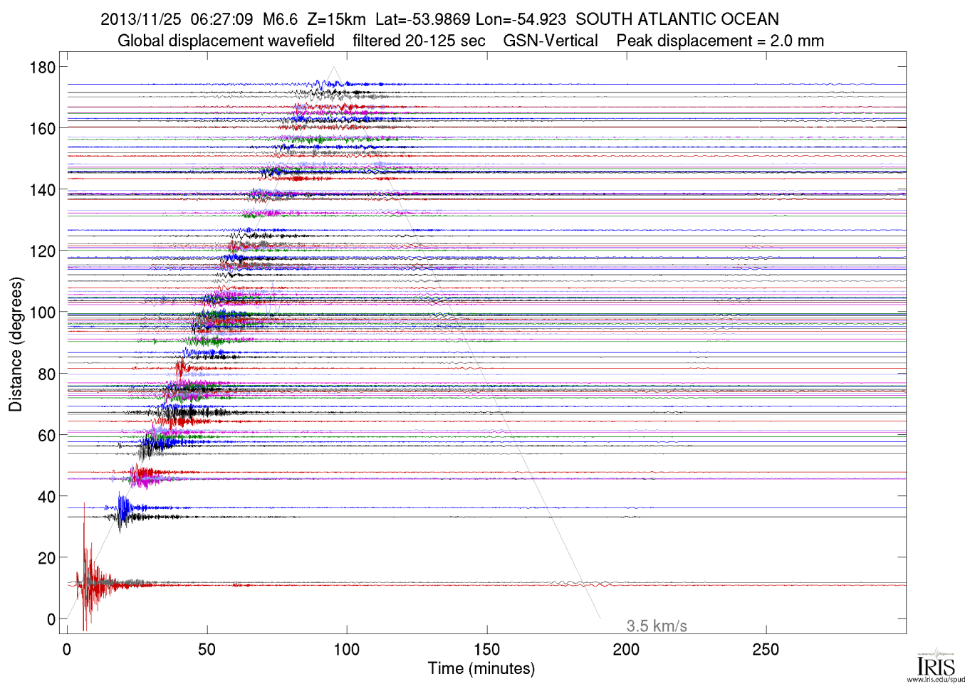 The Event Plots product is a suite of plots that are automatically generated following all global M6.0+ earthquakes (M5.0+ for continental US). The plots use all open broadband data available at the IRIS DMC at the time the product was generated. For more information on Event Plots visit the Event Plot product page. |