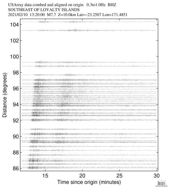Event Plots for mww 7.7 SOUTHEAST OF LOYALTY ISLANDS |