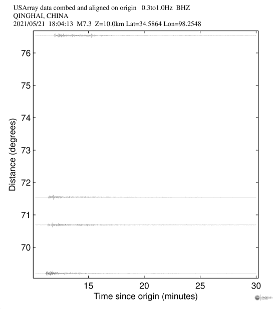Event Plots for Mww 7.3 QINGHAI, CHINA |