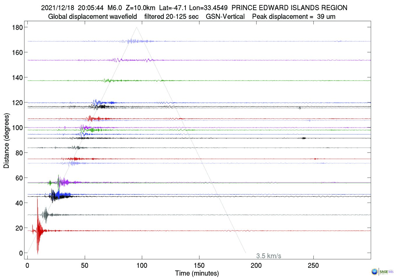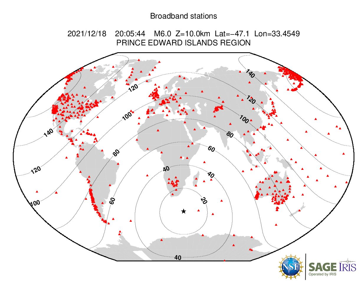 Event Plots for mww 6.0 PRINCE EDWARD ISLANDS REGION |