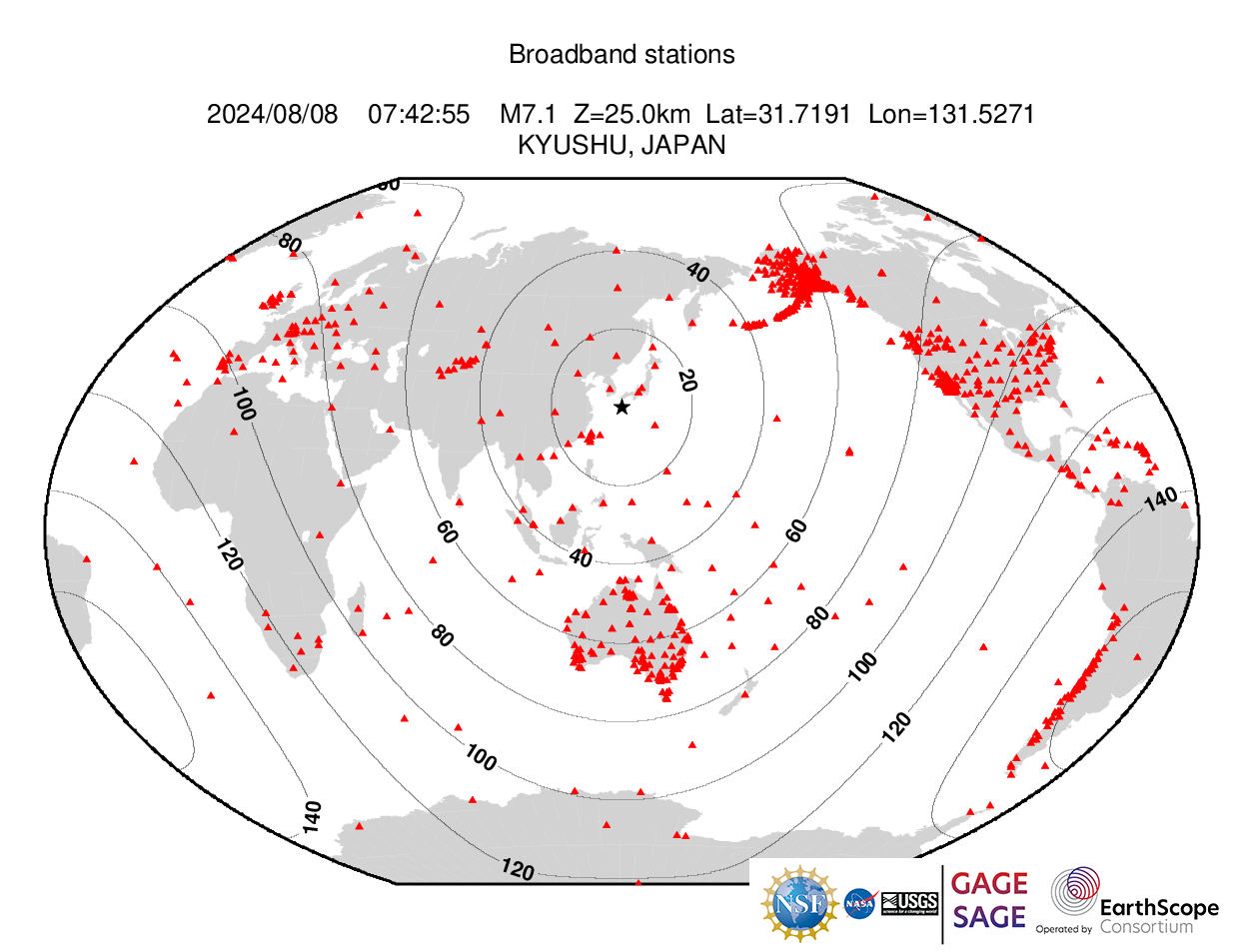 Event Plots for mww 7.1 KYUSHU, JAPAN |