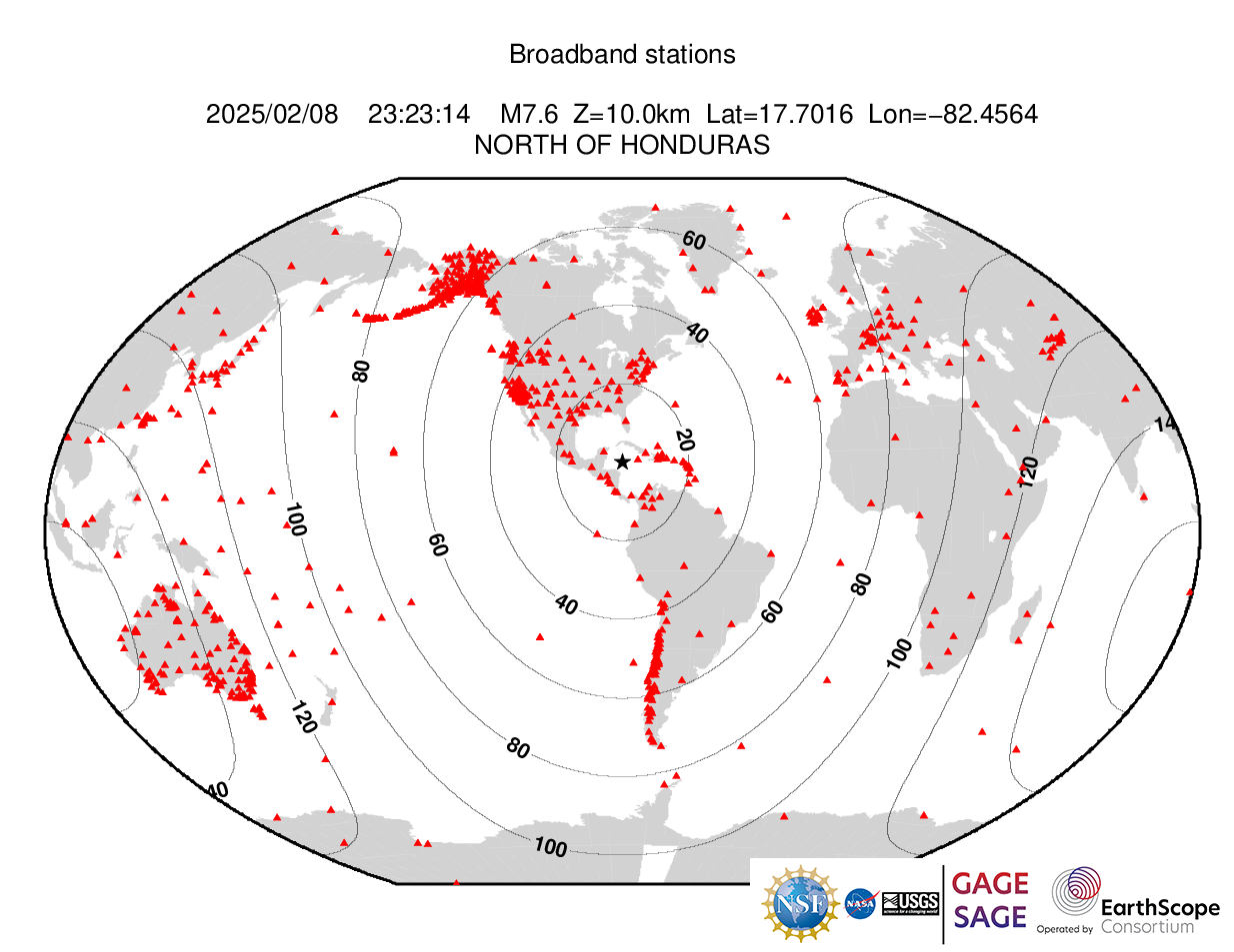 Event Plots for Mww 7.6 NORTH OF HONDURAS |