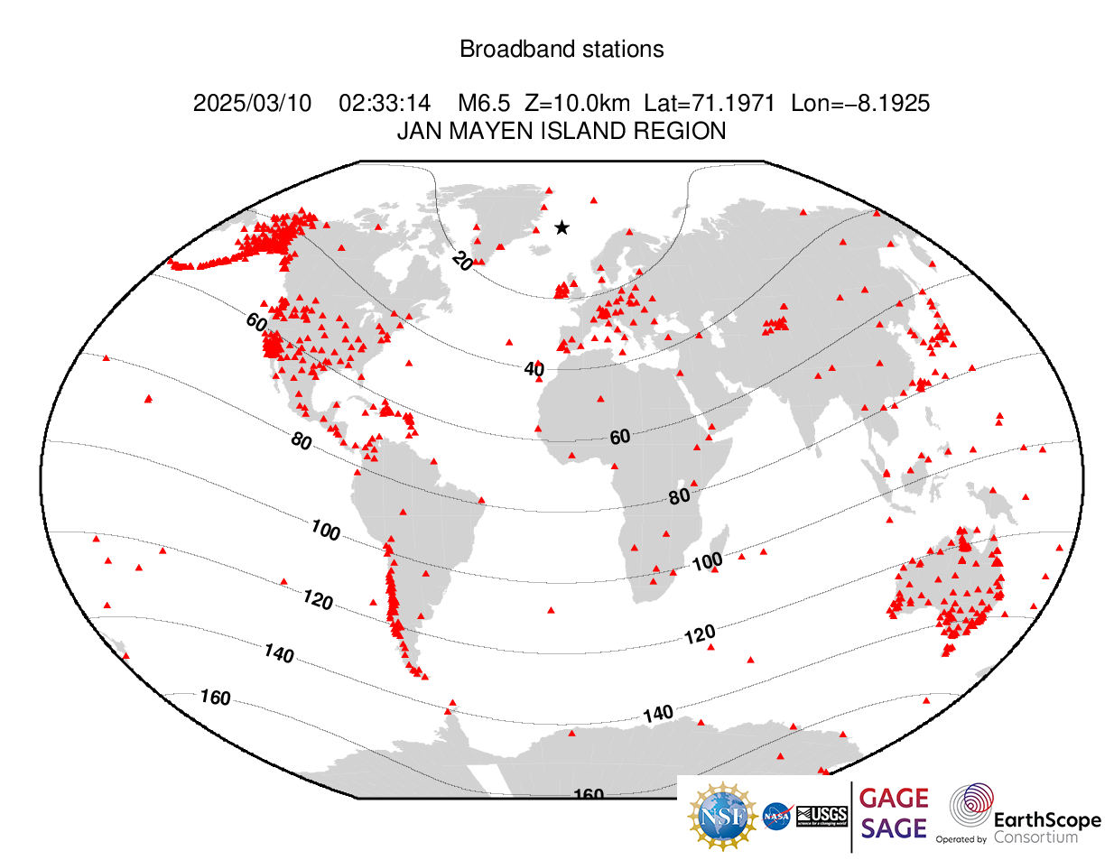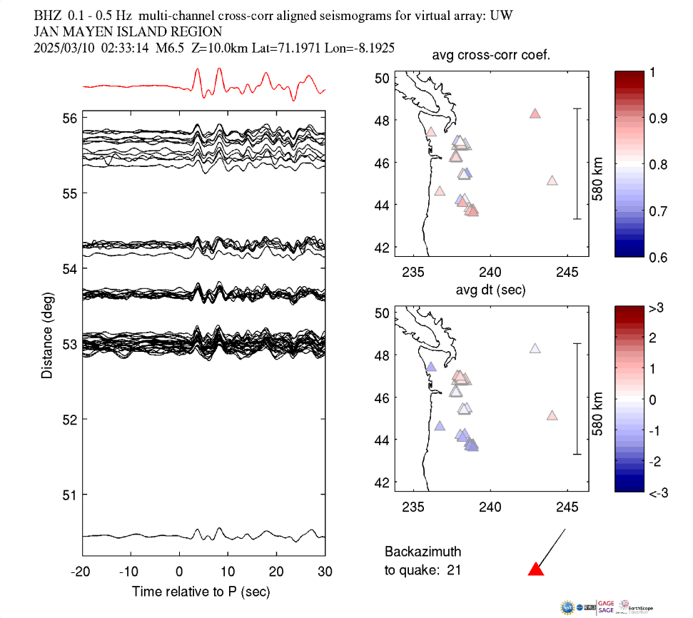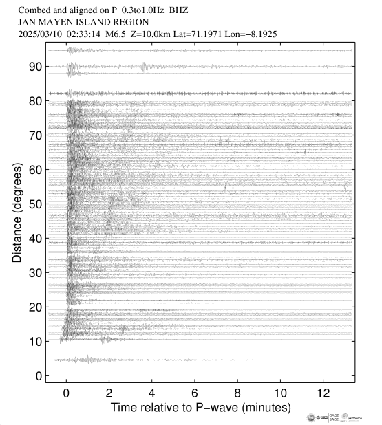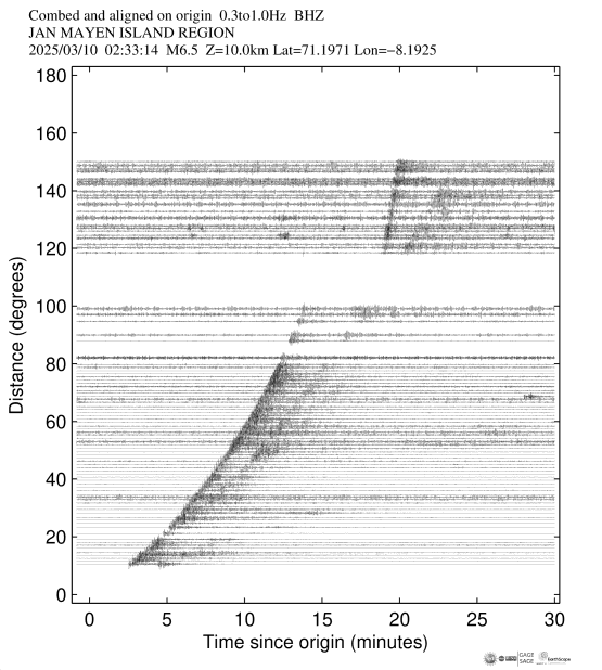 Event Plots for Mww 6.5 JAN MAYEN ISLAND REGION |