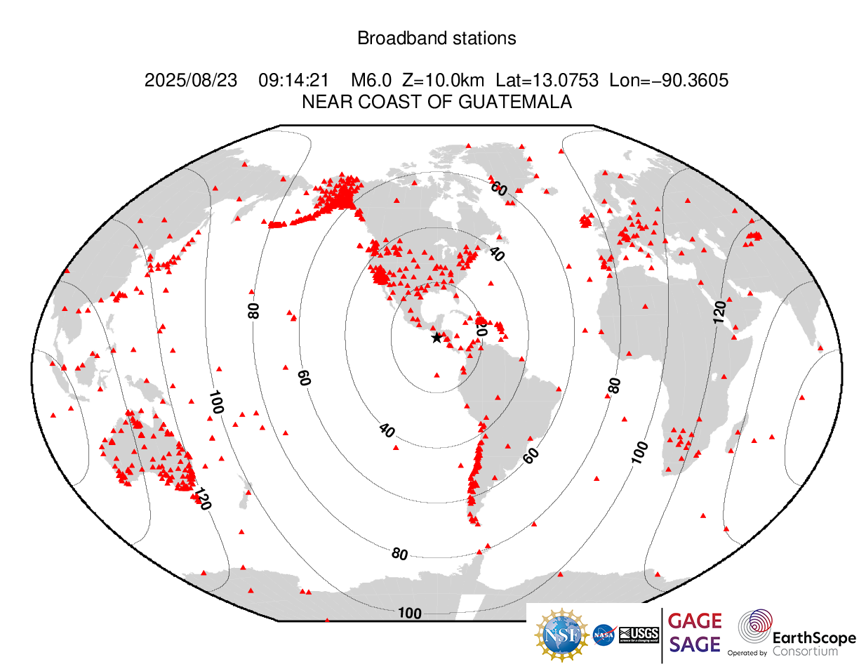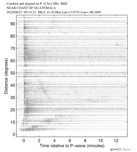 Event Plots for mww 6.0 NEAR COAST OF GUATEMALA |