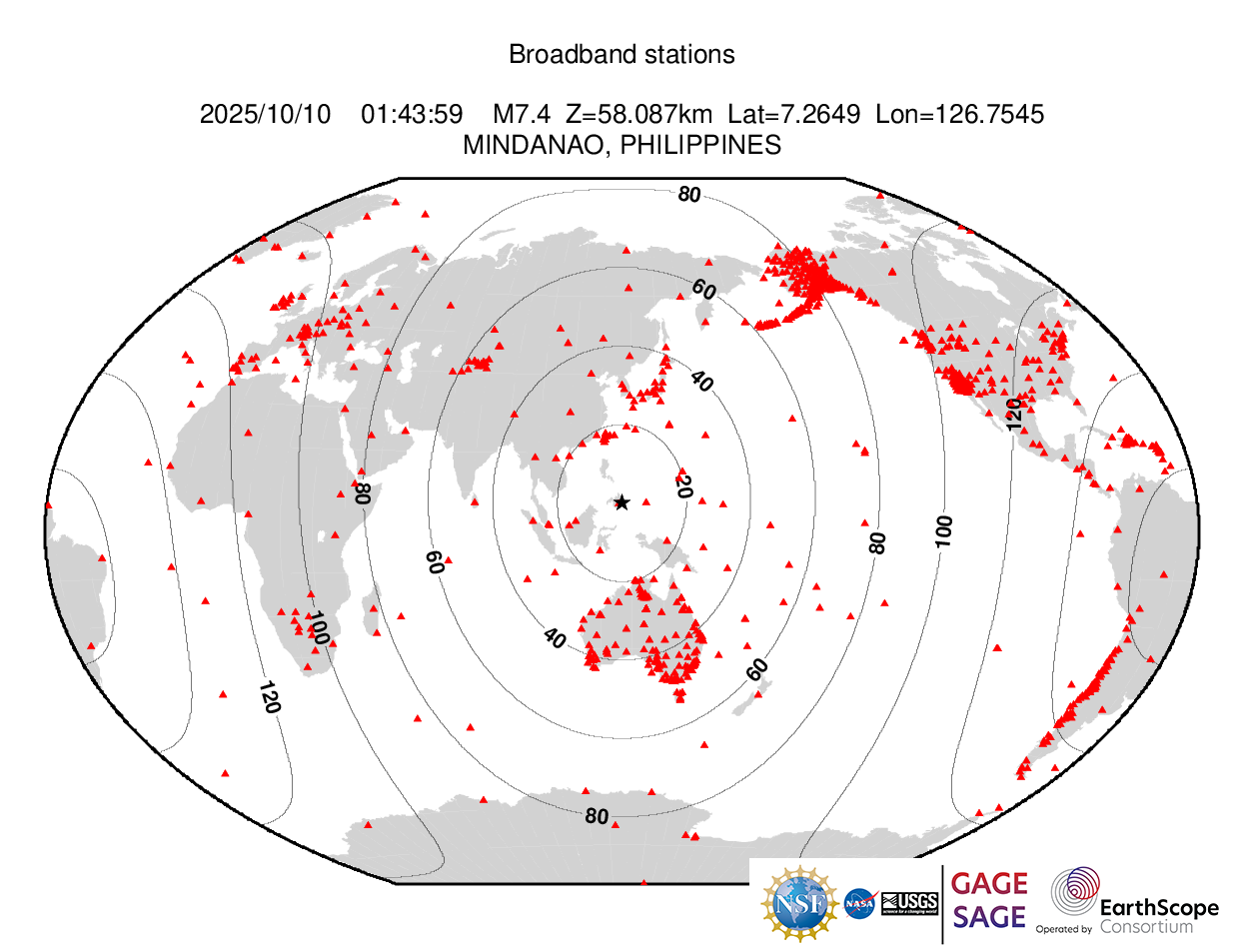Event Plots for mww 7.4 MINDANAO, PHILIPPINES |