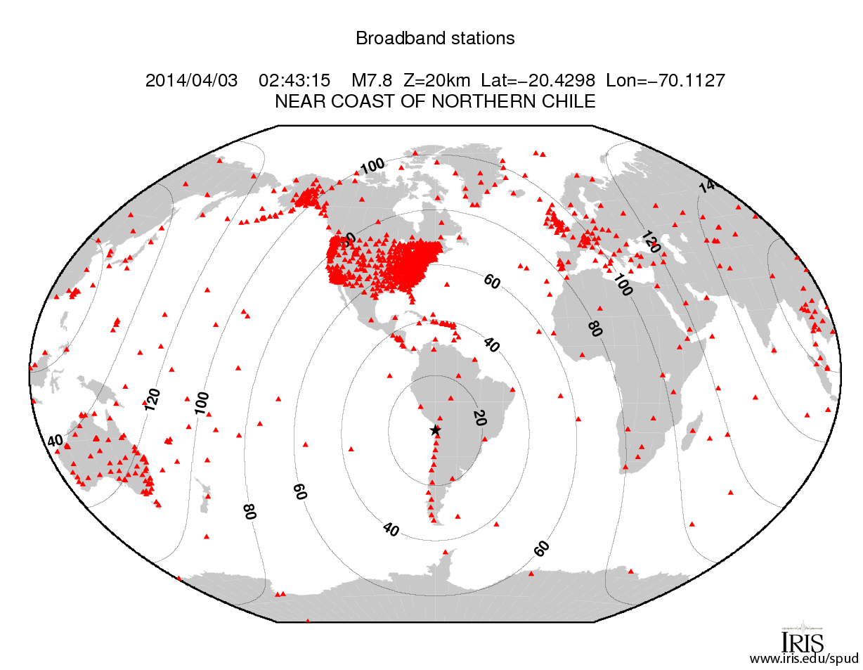 Event Plots for MI 7.8 NEAR COAST OF NORTHERN CHILE |