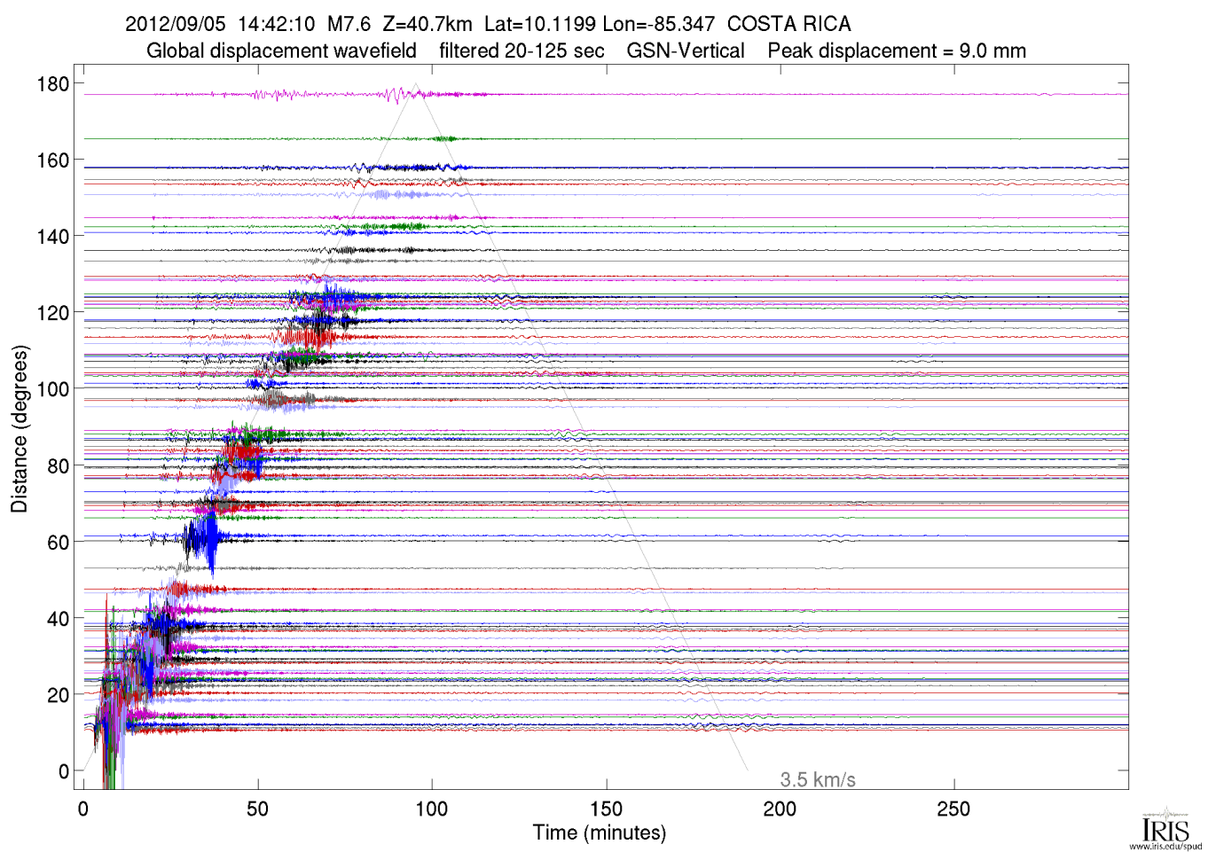 The Event Plots product is a suite of plots that are automatically generated following all global M6.0+ earthquakes (M5.0+ for continental US). The plots use all open broadband data available at the IRIS DMC at the time the product was generated. For more information on Event Plots visit the Event Plot product page. |