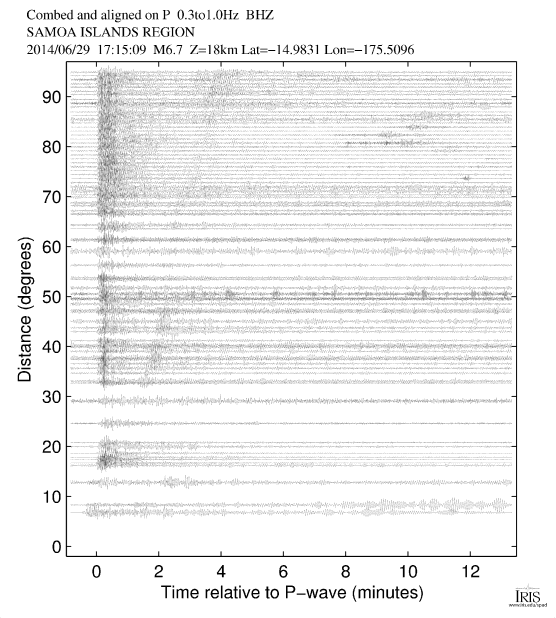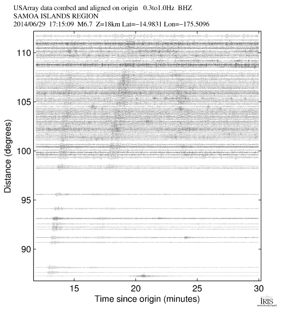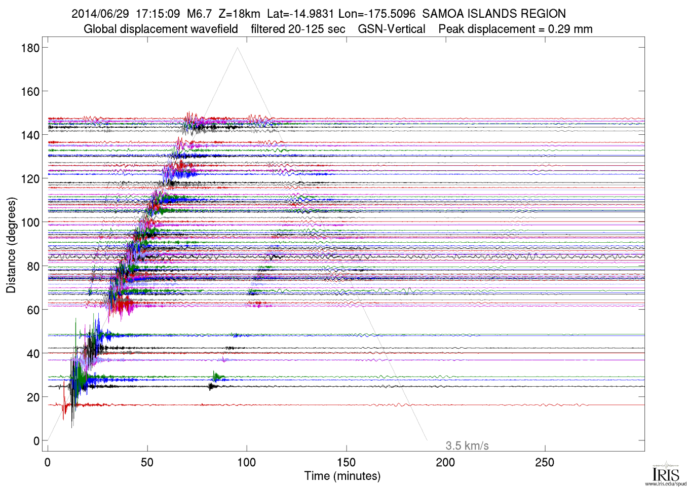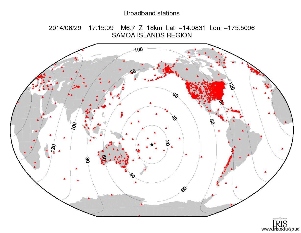 Event Plots for MI 6.7 SAMOA ISLANDS REGION |