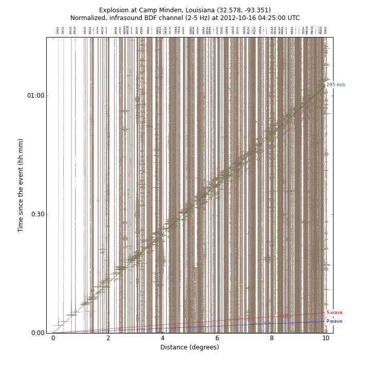 A list of the contributing infrasound stations to the record sections for each event and the processing parameters used by AELUMA are available from the corresponding event page.