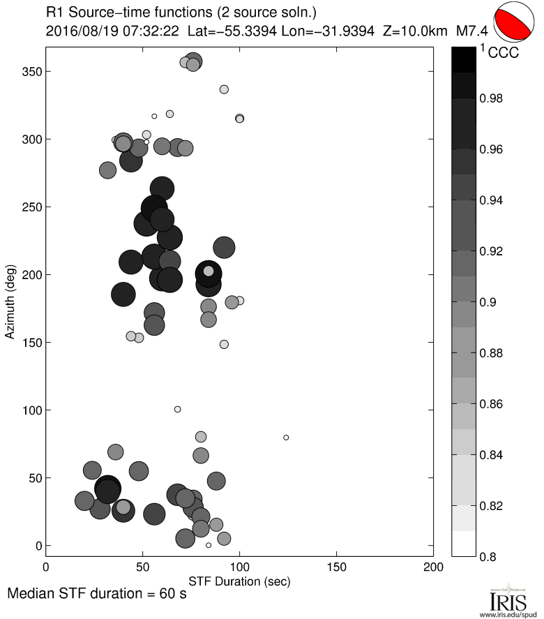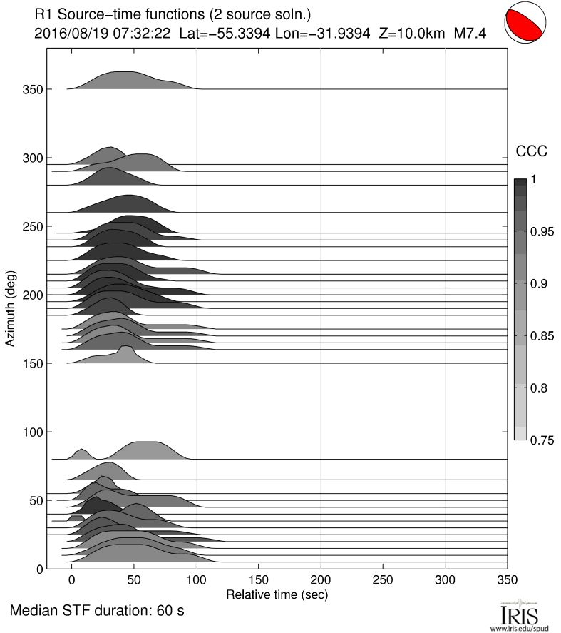 Source Time Function for MWP 7.4 SOUTH GEORGIA ISLAND REGION |