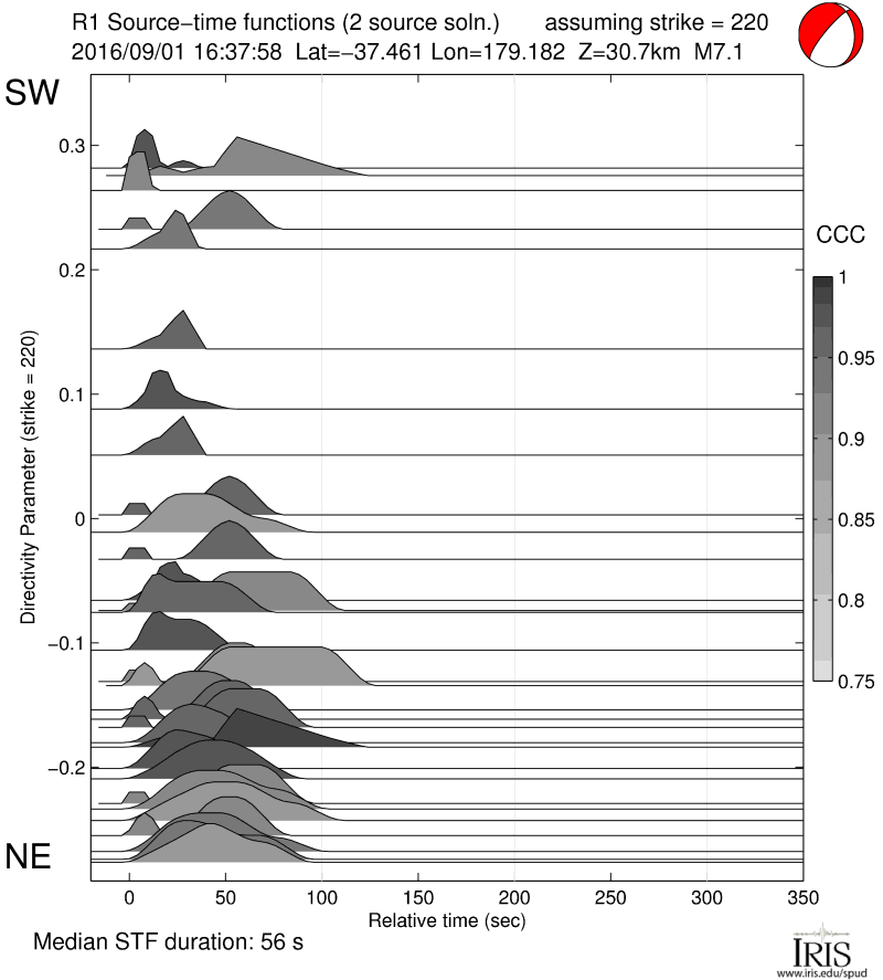 Source Time Function for MWW 7.1 OFF E. COAST OF N. ISLAND, N.Z. |