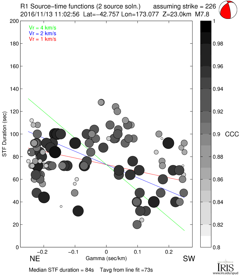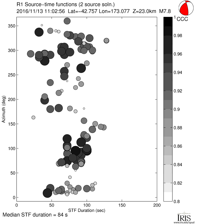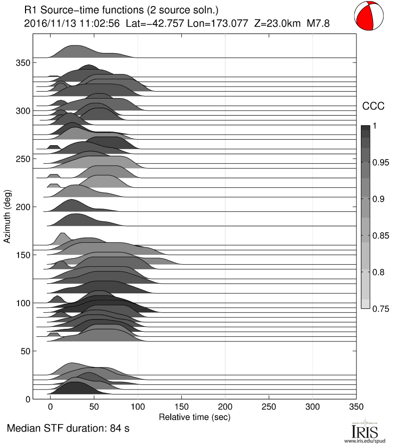 Source Time Function for MWW 7.8 SOUTH ISLAND, NEW ZEALAND |