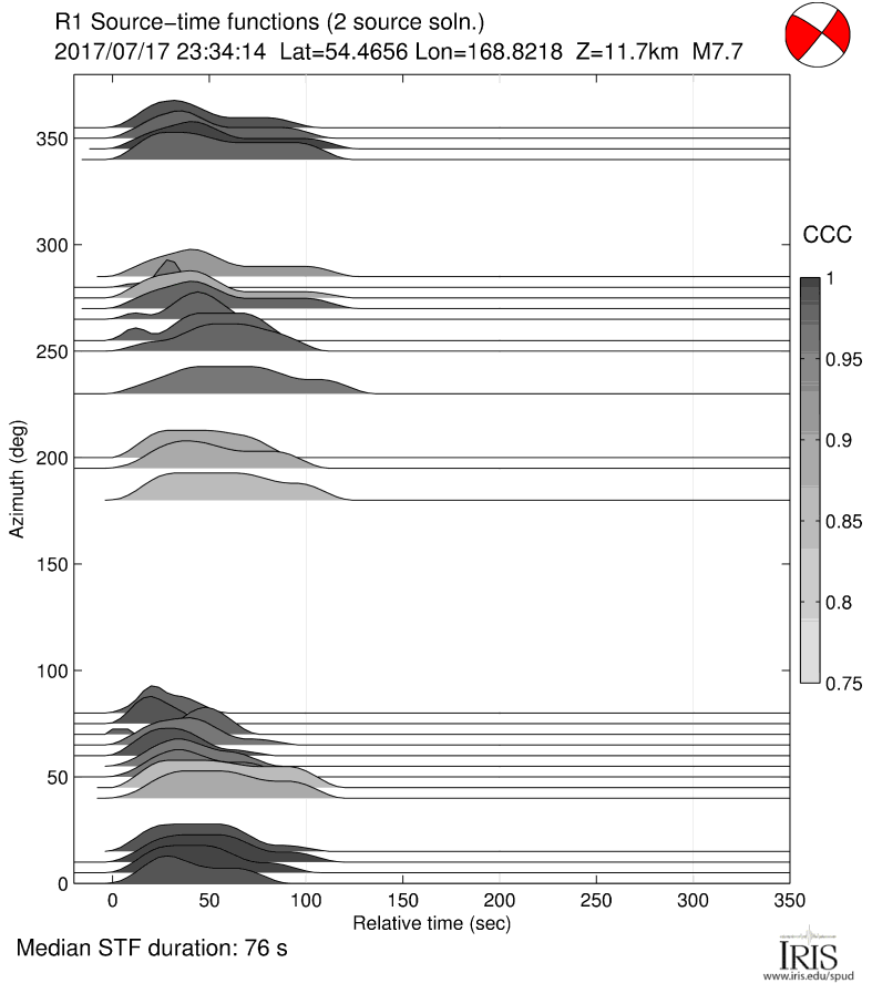 If you use Source Time Functions in publications, please cite according to the instructions at:http://ds.iris.edu/ds/products/sourcetimefunction/#citation Acknowledgements:Charles Ammon generously provided the time-domain iterative deconvolution portion of the code used. Luis Rivera generously provided the normal mode synthetic seismogram codes used. Results can be very sensitive to pre-processing, which neither C.A. nor L.R. contributed to. |