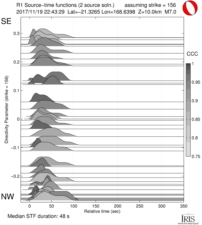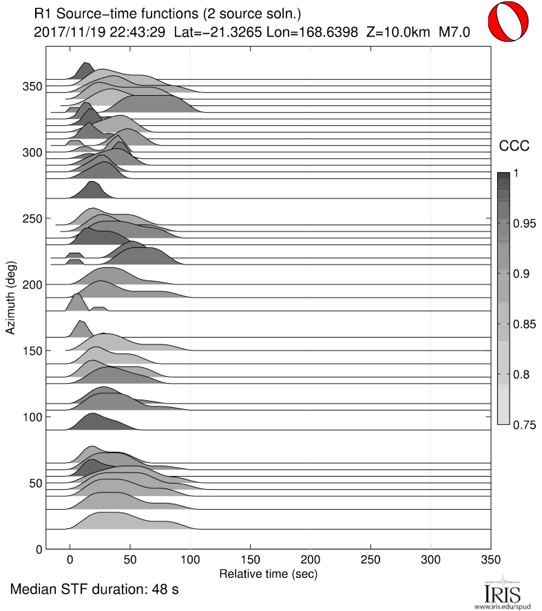If you use Source Time Functions in publications, please cite according to the instructions at:http://ds.iris.edu/ds/products/sourcetimefunction/#citation Acknowledgements:Charles Ammon generously provided the time-domain iterative deconvolution portion of the code used. Luis Rivera generously provided the normal mode synthetic seismogram codes used. Results can be very sensitive to pre-processing, which neither C.A. nor L.R. contributed to. |
